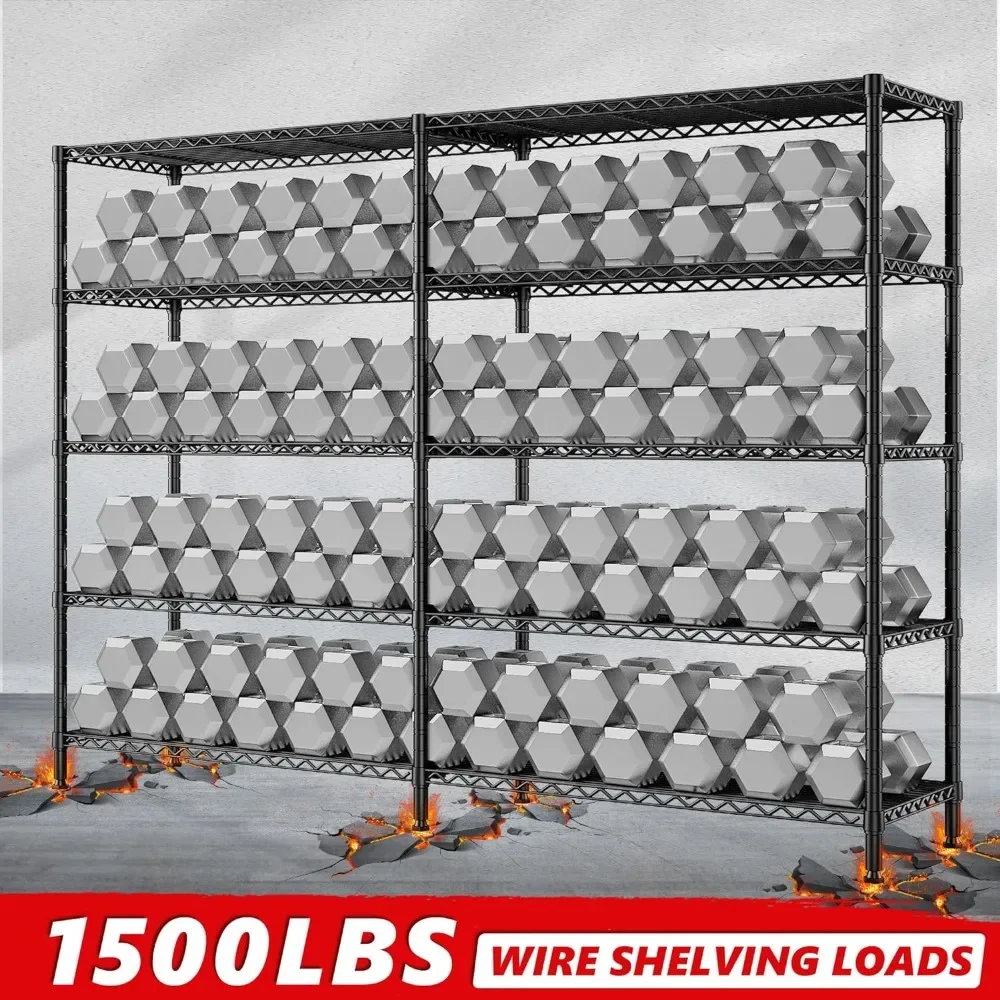 - 【1500 LBS Capacity Super Sturdy Storage Shelving Storage Rack】This Metal shelves for storage made of heavy duty steel wire,and has undergone special coating treatment.Every solid thickened shelving with extra stiffener,can easily bear 300LBS a total of 1500 lbs bearing capacity .which means this metal shelving unit will always be your reliable partner.