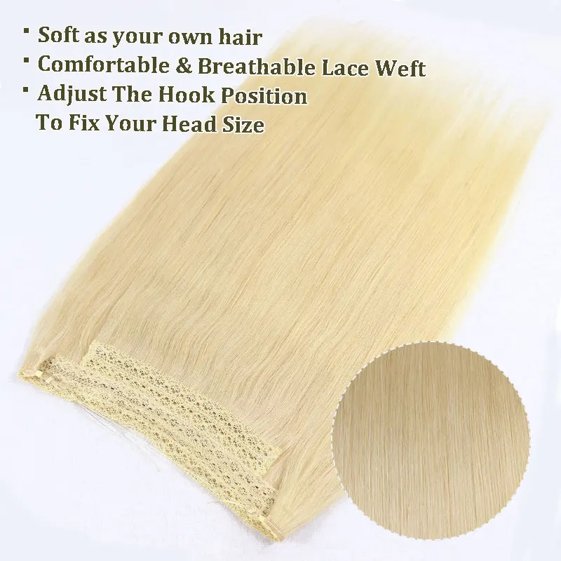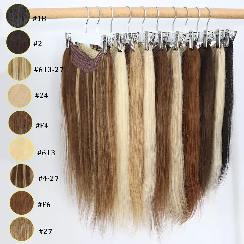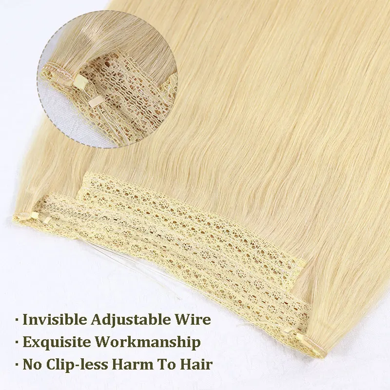 #613 Fish Line Human Hair Extensions Wire Onepiece Hair Extensions For Women Invisible Human Hair Hairpieces 100g 20Inch