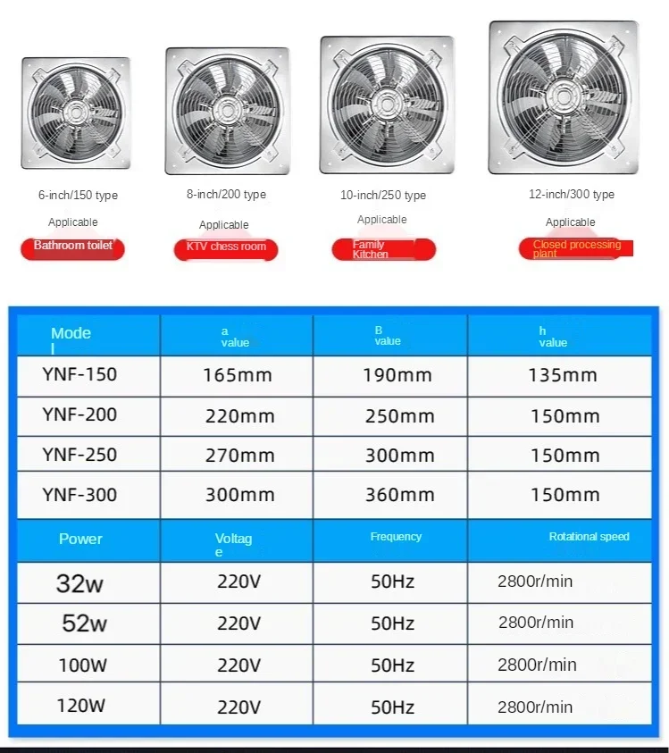 6”7”8” Booster Blower Fan Extractor Exhaust fan Ventilation Pipe Fan Toilet Kitchen Wall Window Stainless Steel Fan
