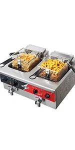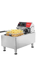 6L Electric Countertop Deep Fryer Extra Large with Drain,Timer,Basket and Lid for Restaurant Use 120V,1800W Commercial D
