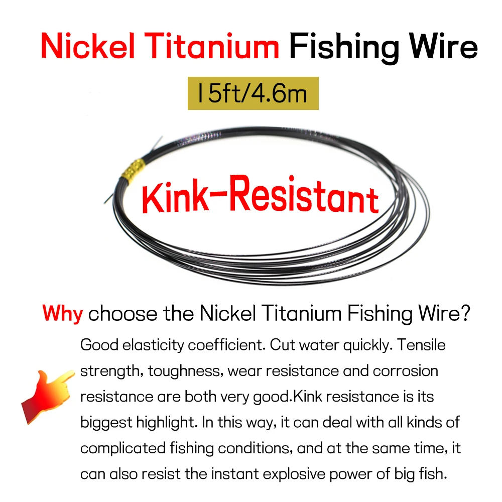 6LB-124LB 15ft/4.6m Kink-Resistant Toughness Nickel Titanium Fishing Leader Line for Saltwater Pike Tuna Wahoo Fishing