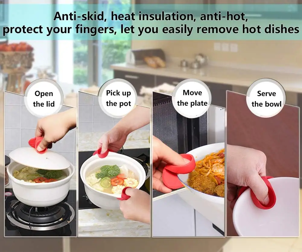 【Oven Mini Mitts】:Mini gloves are not as clumsy as regular silicone gloves,easy to store. Fingers flexible and convenient, can take the plate at will, clean, not hot fingers, not crowded fingers.