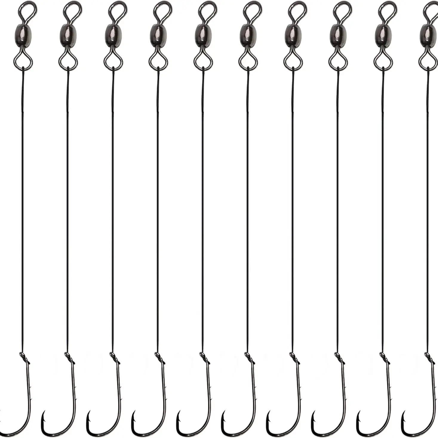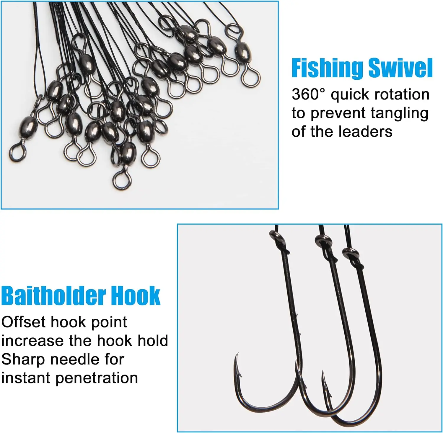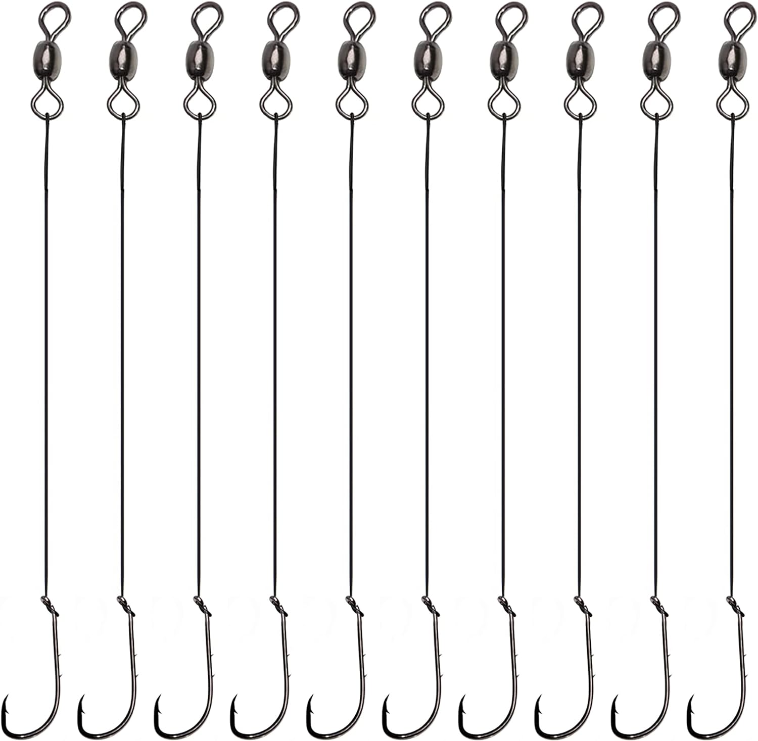 【DURABLE MATERIAL】The wire leader made of 1×7 strands stainless steel wire, tough enough to prevent big toothy fish from breaking your line. Nylon coating is corrosion resistant, the fishing wire leader hook is the best choice for surf fishing and bottom fishing.