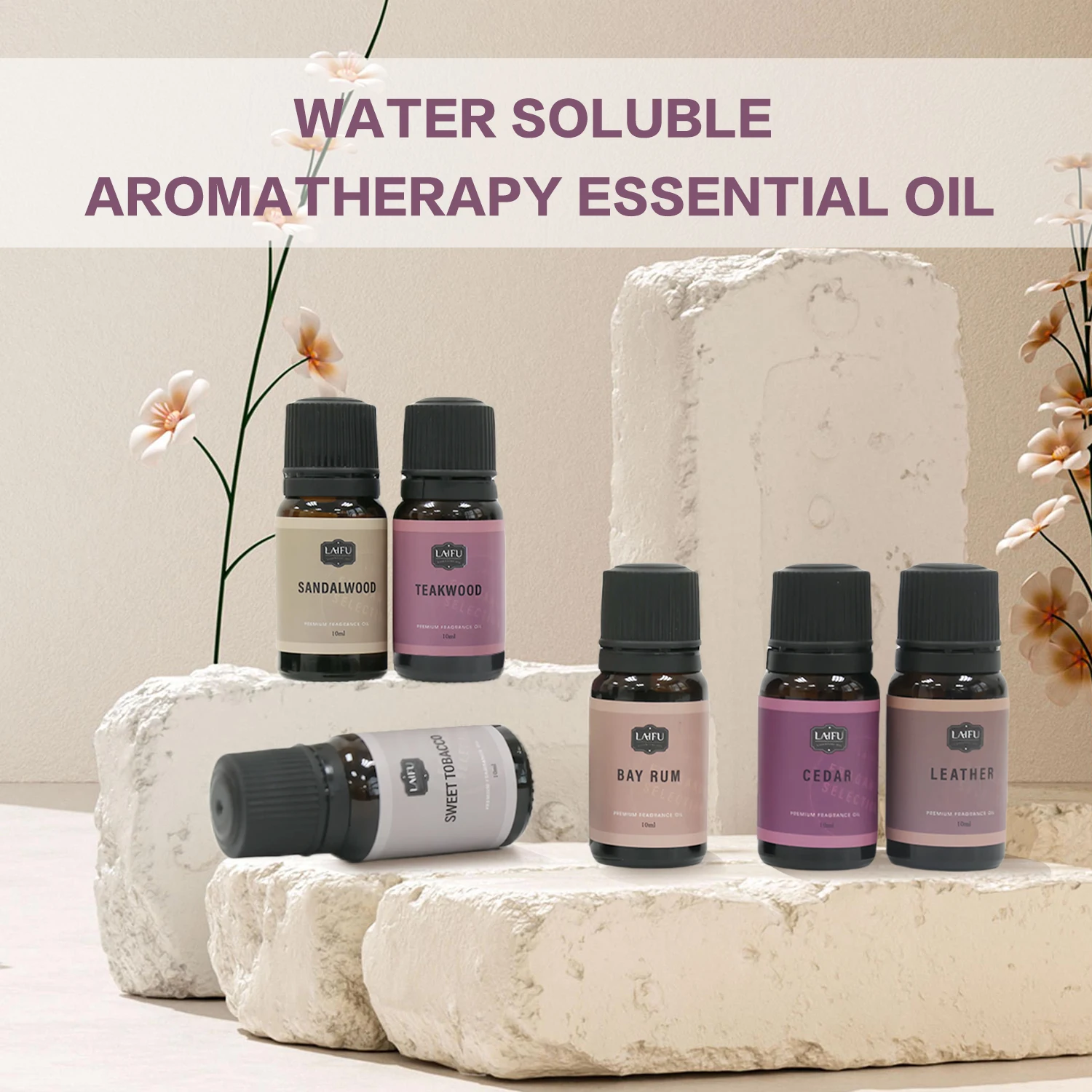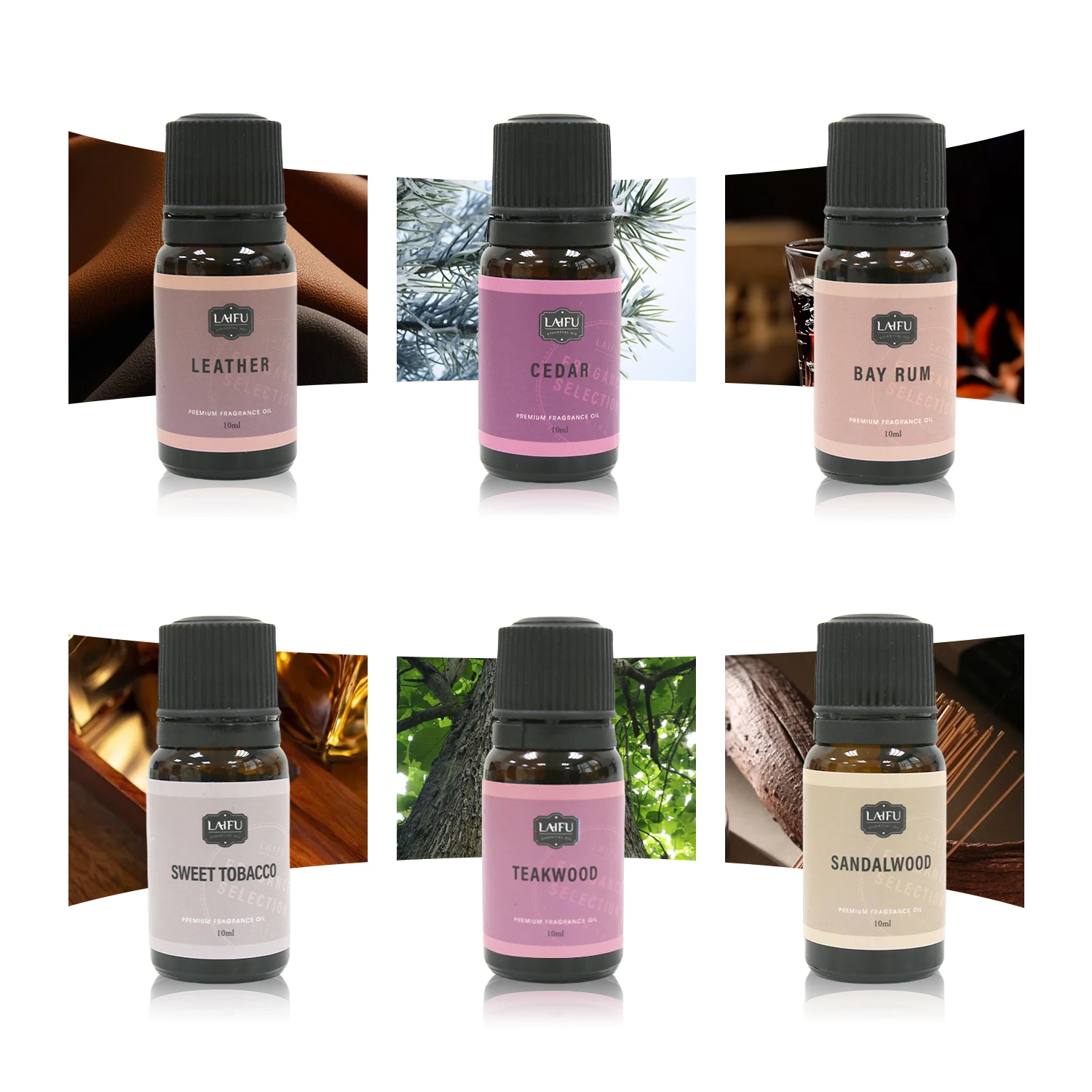 6x10ml Fragrance Essential Oils Set Cedar Sandalwood Bay Rum Teak Tobacco Leather for Diffusers Candles Home Office Gift