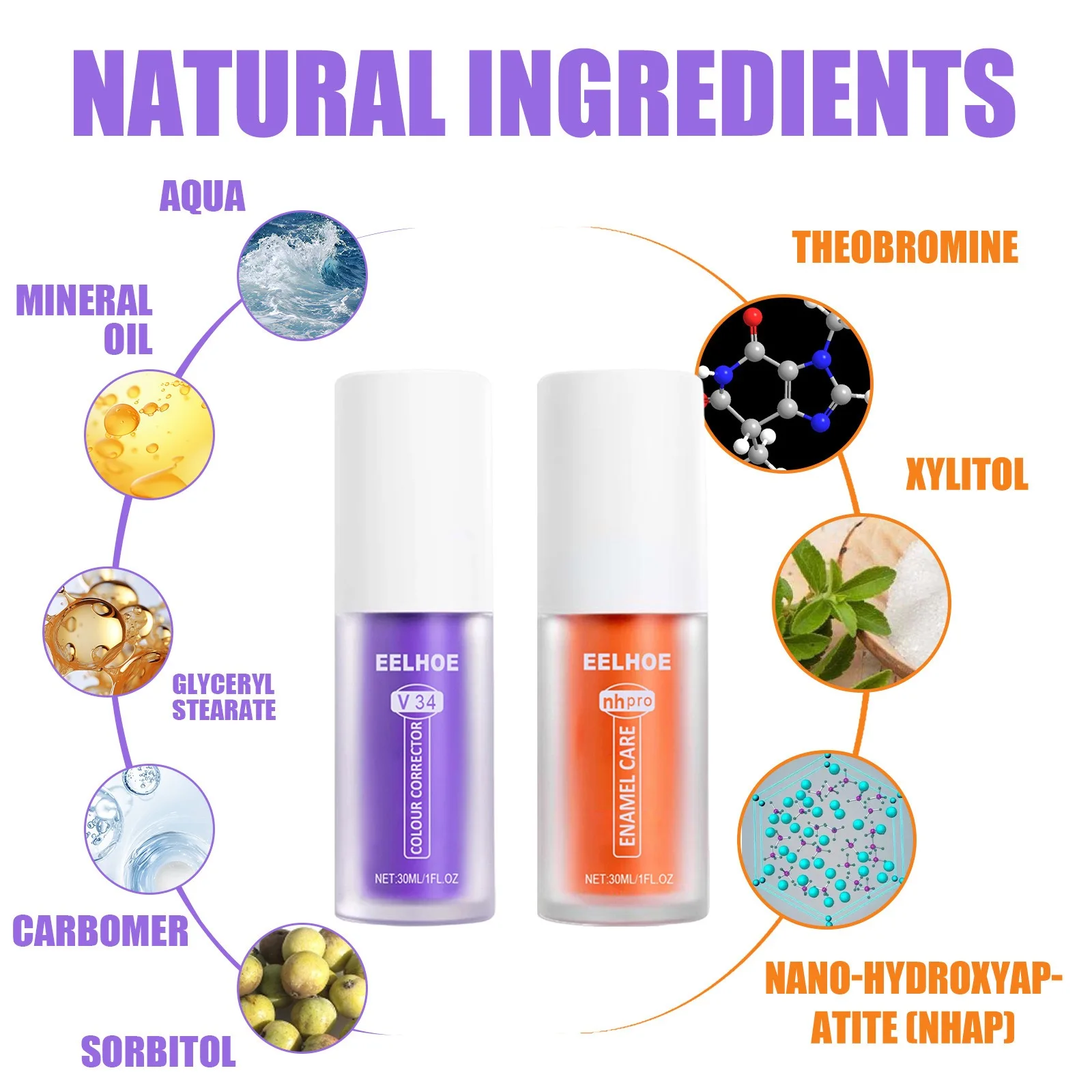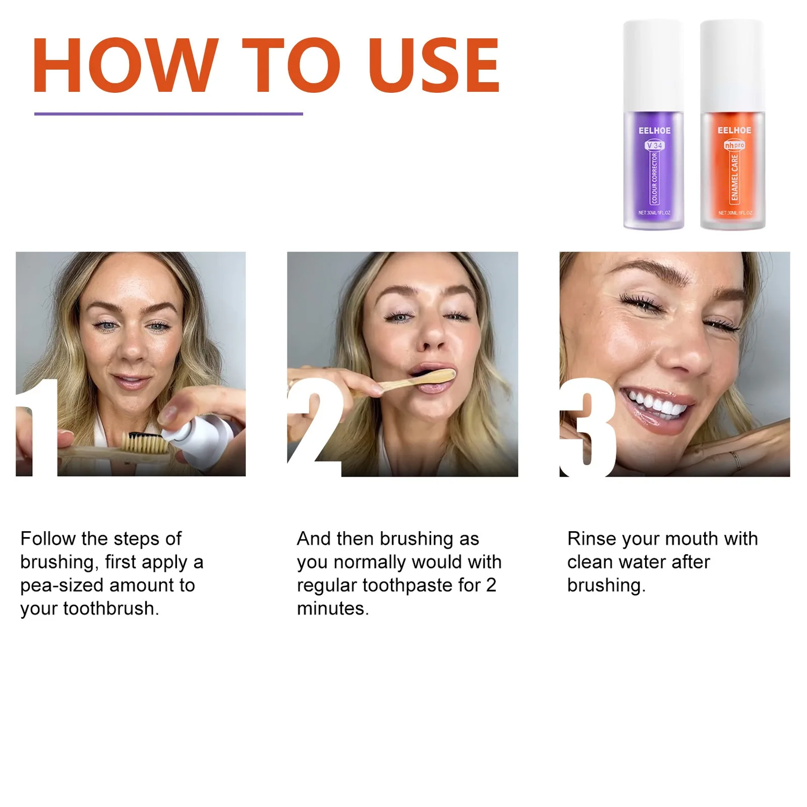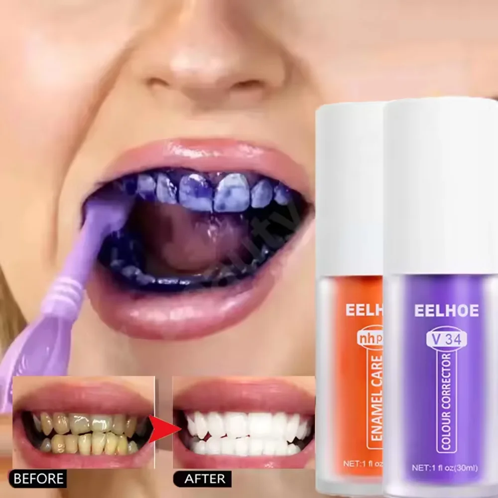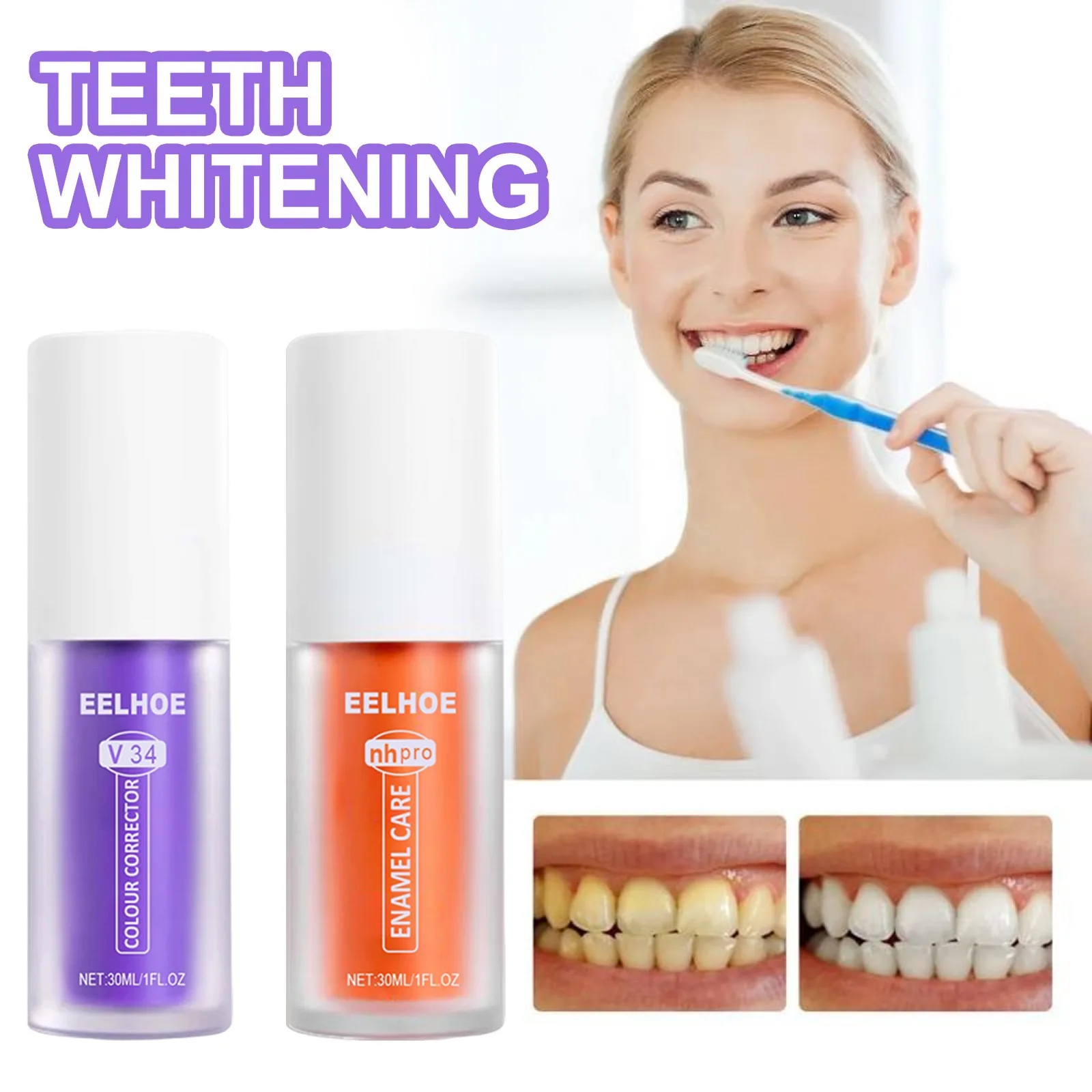 V34 Purple Orange Toothpaste Teeth Whitening Remove Plaque Stains Cleaning Oral Hygiene Bleaching Tooth Care Fresh Breath Dental Tools