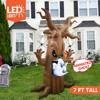 - Perfect Design. This 7ft Halloween inflatable tree with a swinging ghost and built-in LED lights is designed to add a touch of horror and spookiness to your outdoor decor. This inflatable comes with an extended cord, ground stakes, fastened ropes, built-in sandbags, and a plug with UL certification.