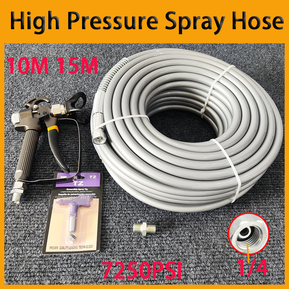 1/4BSP 7250PSI Airless Paint Spray Hose Kit Spray Gun High Pressure Double-Layer Fiber-Nylon Tube w/ 517 Tip and Tip Guard