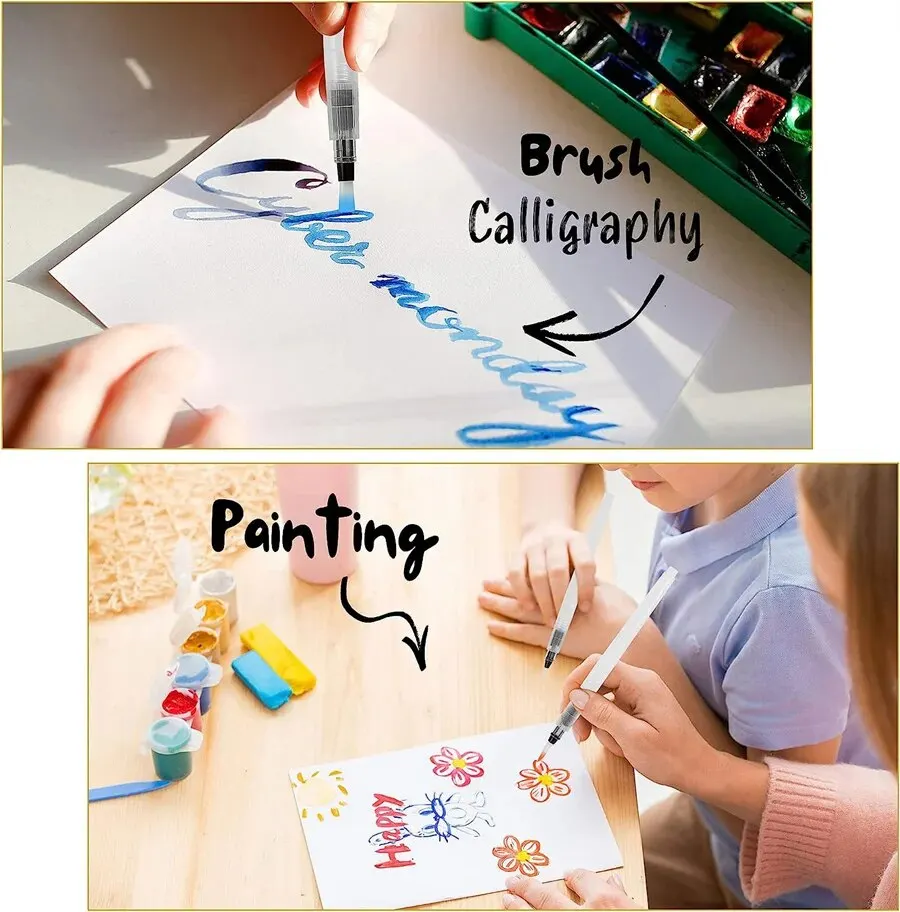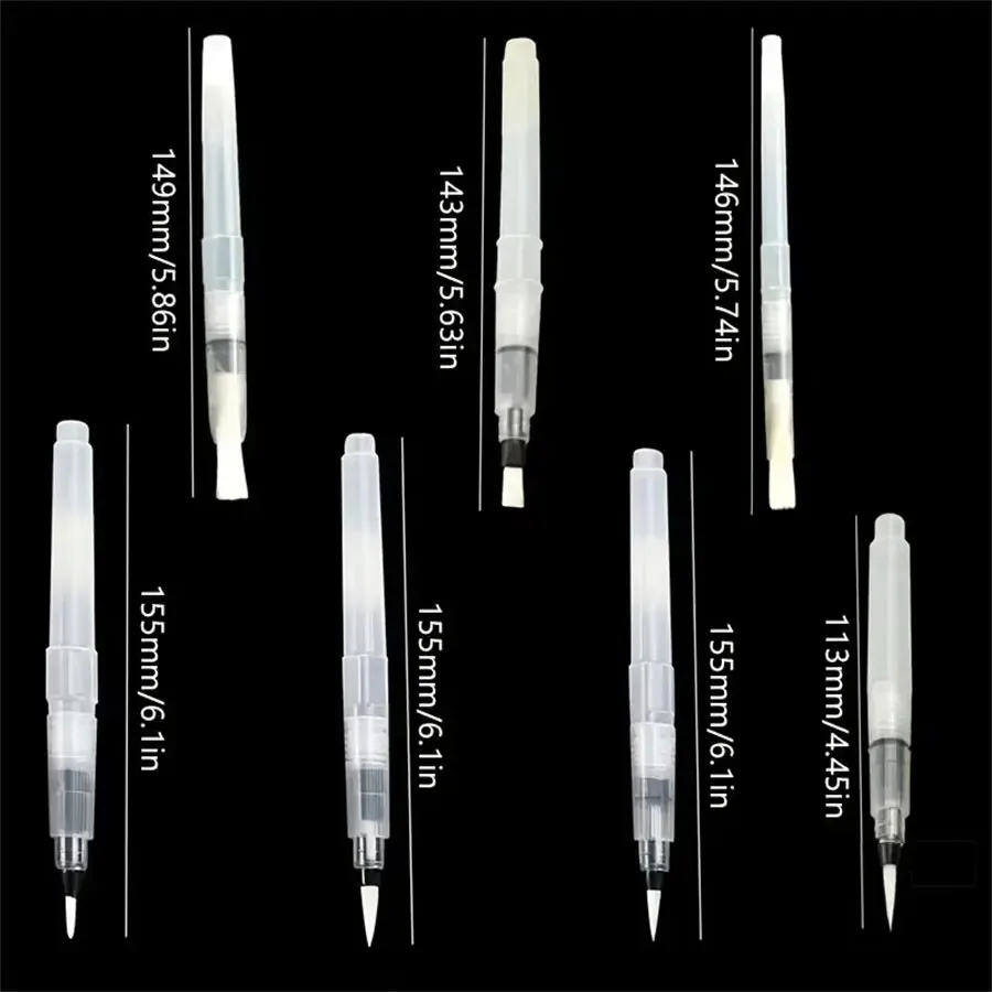 7 paint brushes pen type Set, in plastic with tank, for water Brushes for watercolor. Very interesting product, which can be used anywhere with your favorite colors. Not tried yet.
