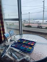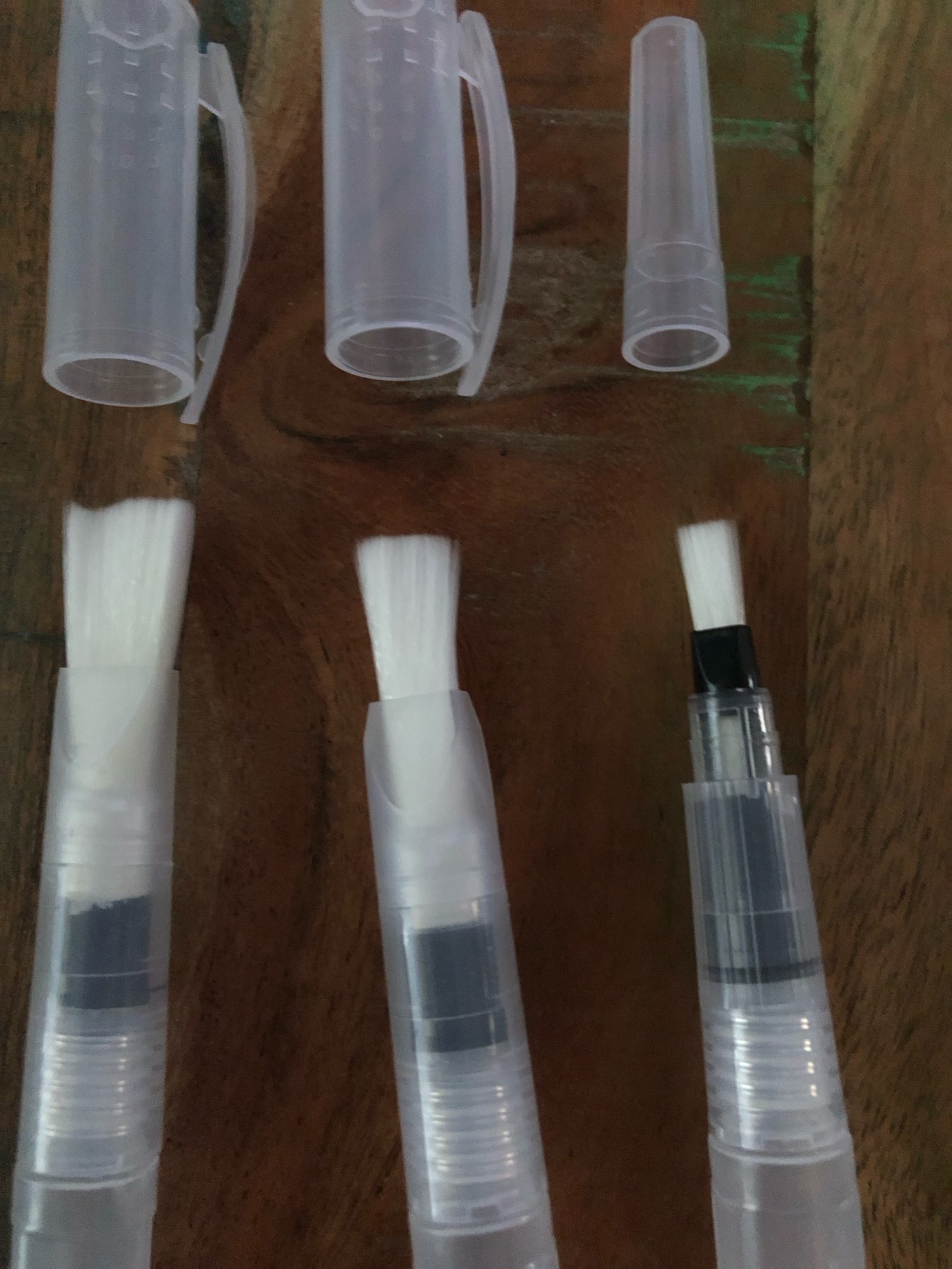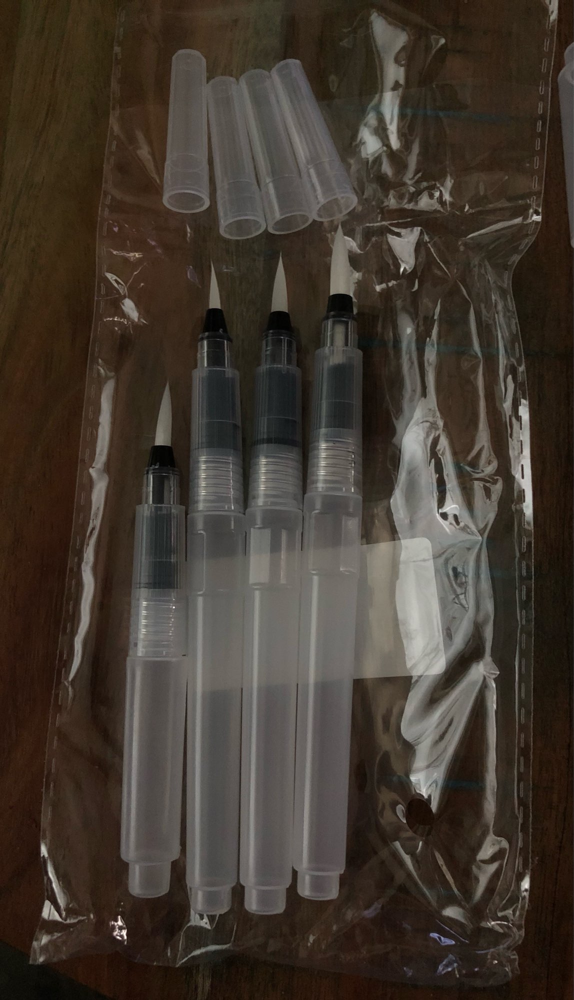 7 paint brushes pen type Set, in plastic with tank, for water Brushes for watercolor. Very interesting product, which can be used anywhere with your favorite colors. Not tried yet.
