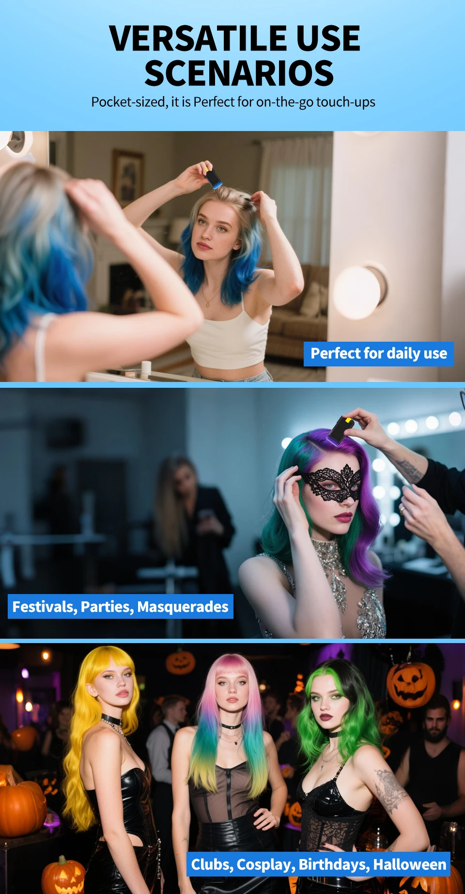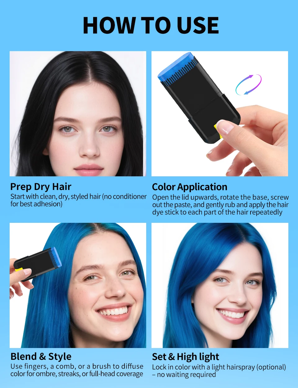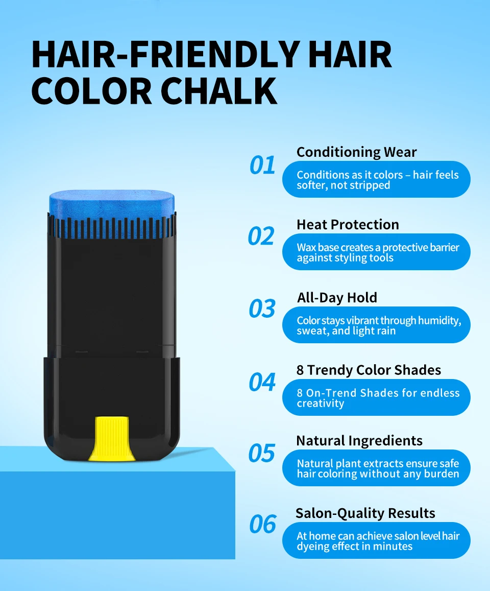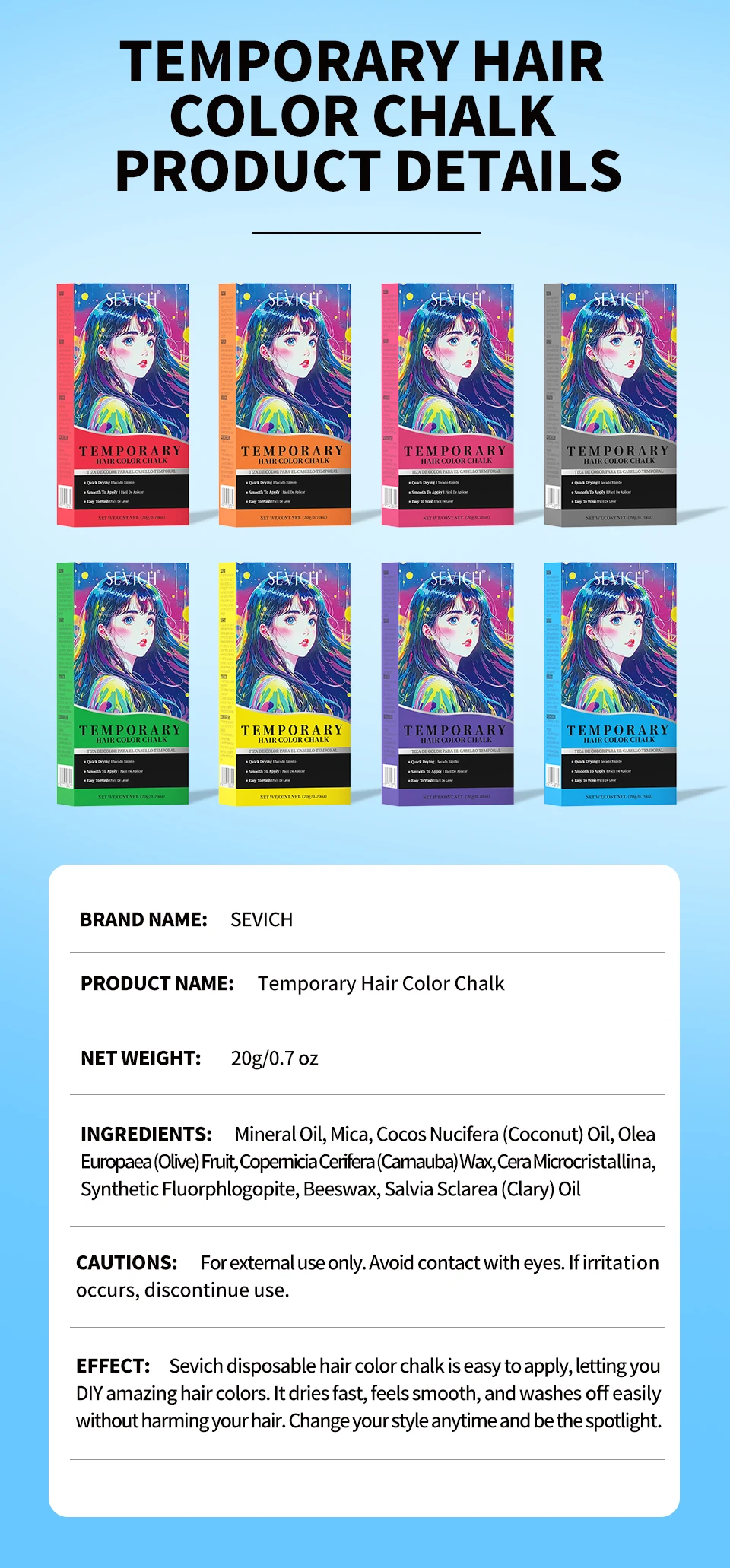 EFFECT: Sevich disposable hair color chalk is easy to apply, letting you DIY amazing hair colors. It dries fast, feels smooth, and washes off easily without harming your hair. Change your style anytime and be the spotlight.