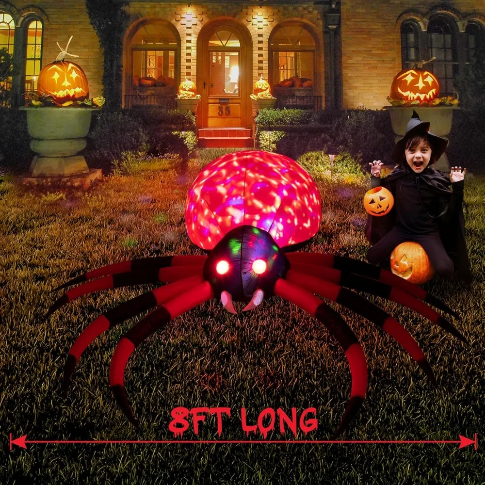- 8FT Giant Halloween Inflatable Decoration: Give your Halloween garden a focal point with our giant inflatable spider decoration. It will attract even more attention and make your home a popular destination on Halloween night, especially captivating mischievous trick-or-treaters, children, neighbors, and friends.