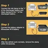 5.Easy to Use: Attach the red clip to the positive side of the battery. Black to the negative side of the battery.