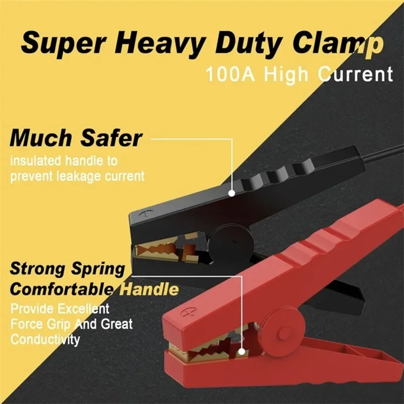 2.The two giant alligator clamps have strong jagged teeth and springs for excellent grip force. The jaws are strong and make connections easy. And the Jumper Cables has insulating handle to prevent electric shock and protect the safety of users