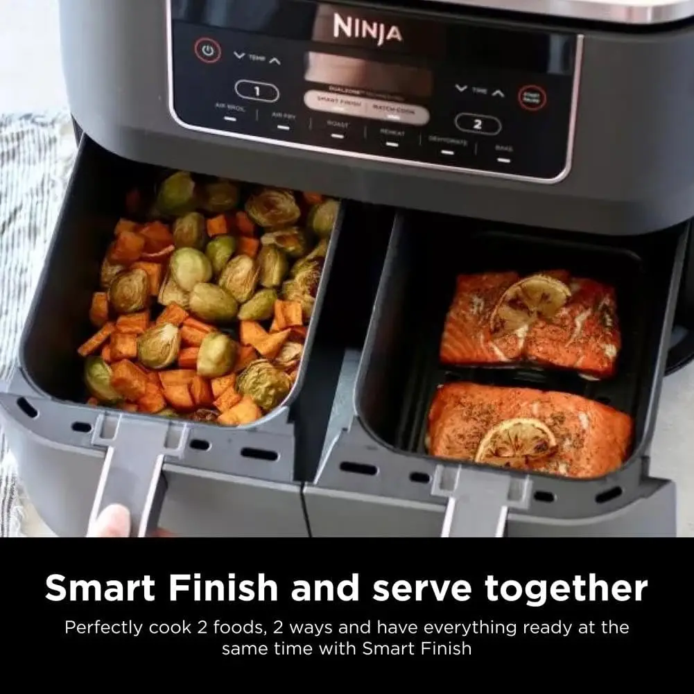 - SMART FINISH & MATCH COOK: DualZone Technology allows you to choose between the Smart Finish feature, which unlocks cooking 2 foods 2 ways that finish at the same time, and the and a Match Cook button to easily copy settings across zones for full 8-qt capacity.