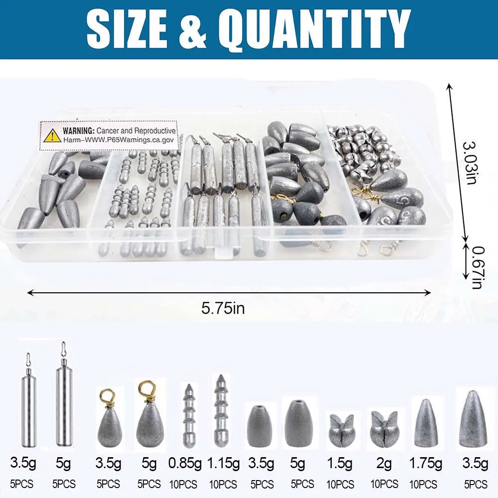 2. Including Split shot weights, Nail fishing weights for worm lure, Bullet shape fishing weights, Drop shot weight…