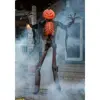- PRODUCT INCLUDES: This Animatronic Giant Pumpkin Head Scarecrow Decoration features a standing decoration that easily assembles with included instructions. The kit includes a pressure activated step pad that sets off the figure’s motion, lights, and sound effects.