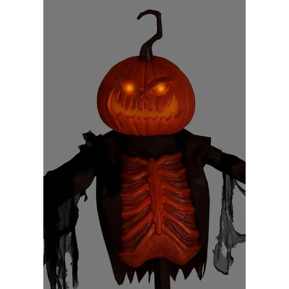 - FRIGHTENING DETAILS: Each of our unique animatronic Halloween decorations features details that are crafted for maximum fright factor. This animated Pumpkin Head Prop features a frightening Jack O’ Lantern head, glowing lights, ominous sound effects, and animated motion that moves it from side to side.