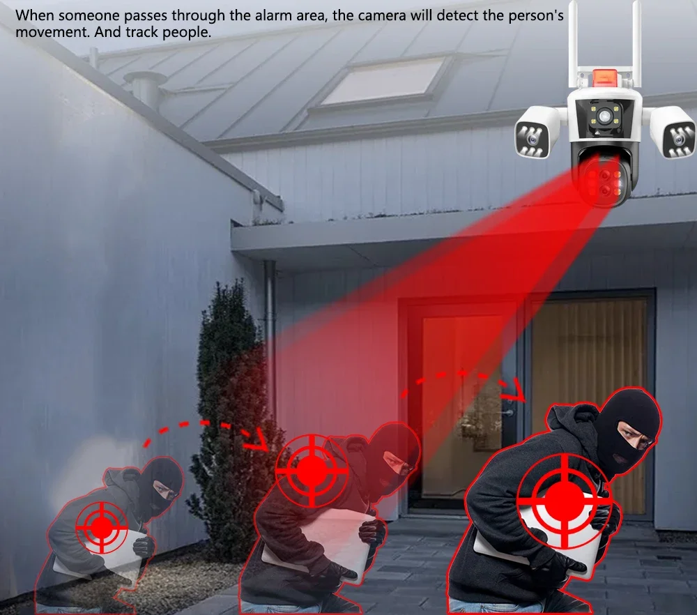 When someone passes through the alarm area, the camera will detect the person’s movement. And track people.