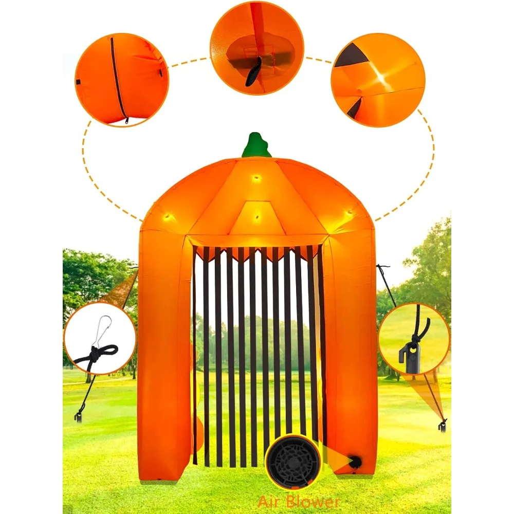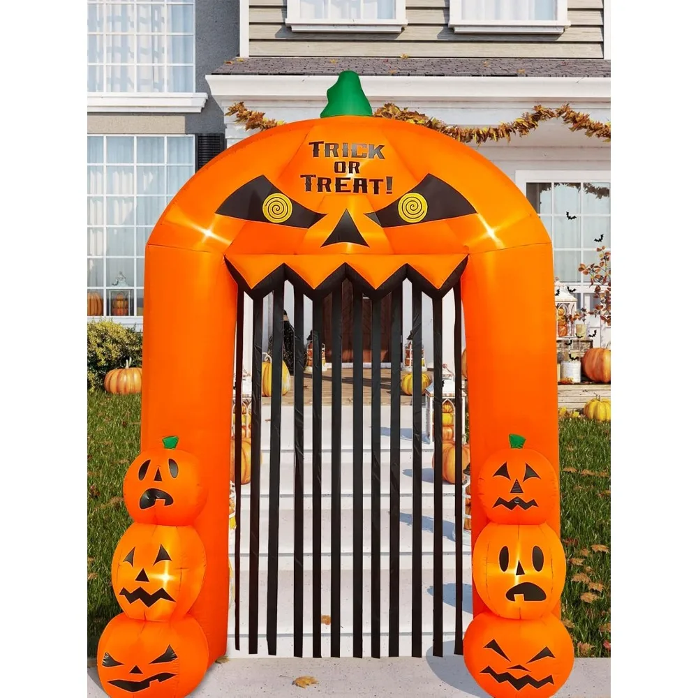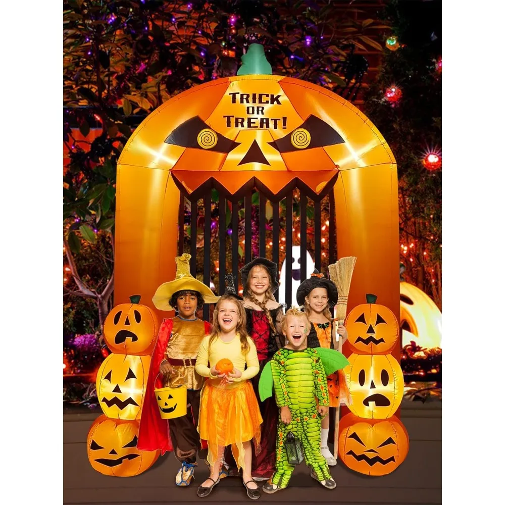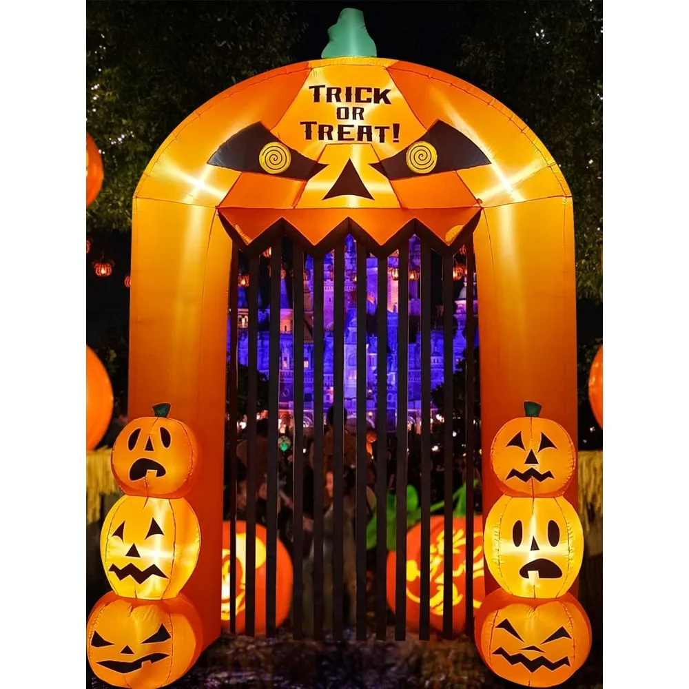 - 🎃 9.5 FT Halloween Inflatable Pumpkin Arch: You will receive the Halloween inflatables pumpkin arch. Everything needed for installation such as ground stakes, mental buttons, tethers and blower are included. Installation instructions are included, please read carefully before installation.