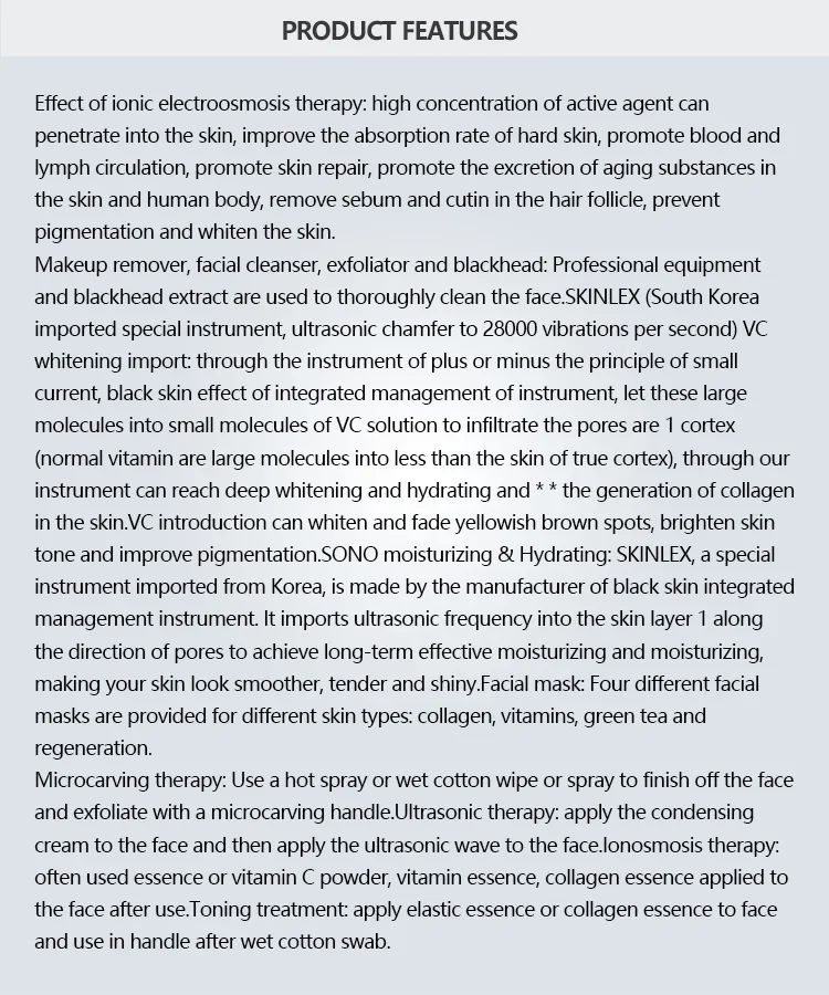 faceand exfoliate with a microcarving handle.Ultrasonic therapy: apply