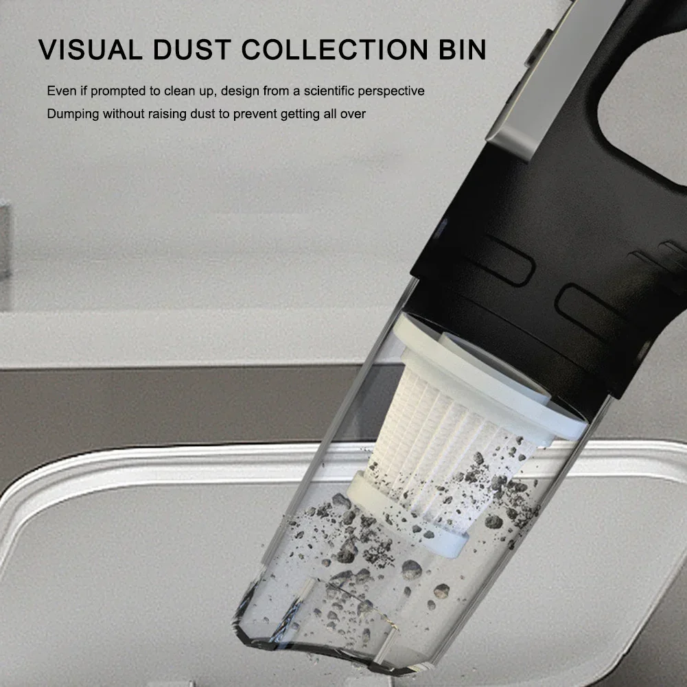 3. Filtro lavável avançado:Este aspirador sem fio portátil está equipado com um filtro lavável premium, garantindo uma filtragem eficiente e evitando entupimentos. Basta remover o filtro da caixa de coleta de pó, enxaguá-lo com água e deixá-lo secar para uso futuro. Isso economiza dinheiro em filtros de substituição e garante um desempenho duradouro.