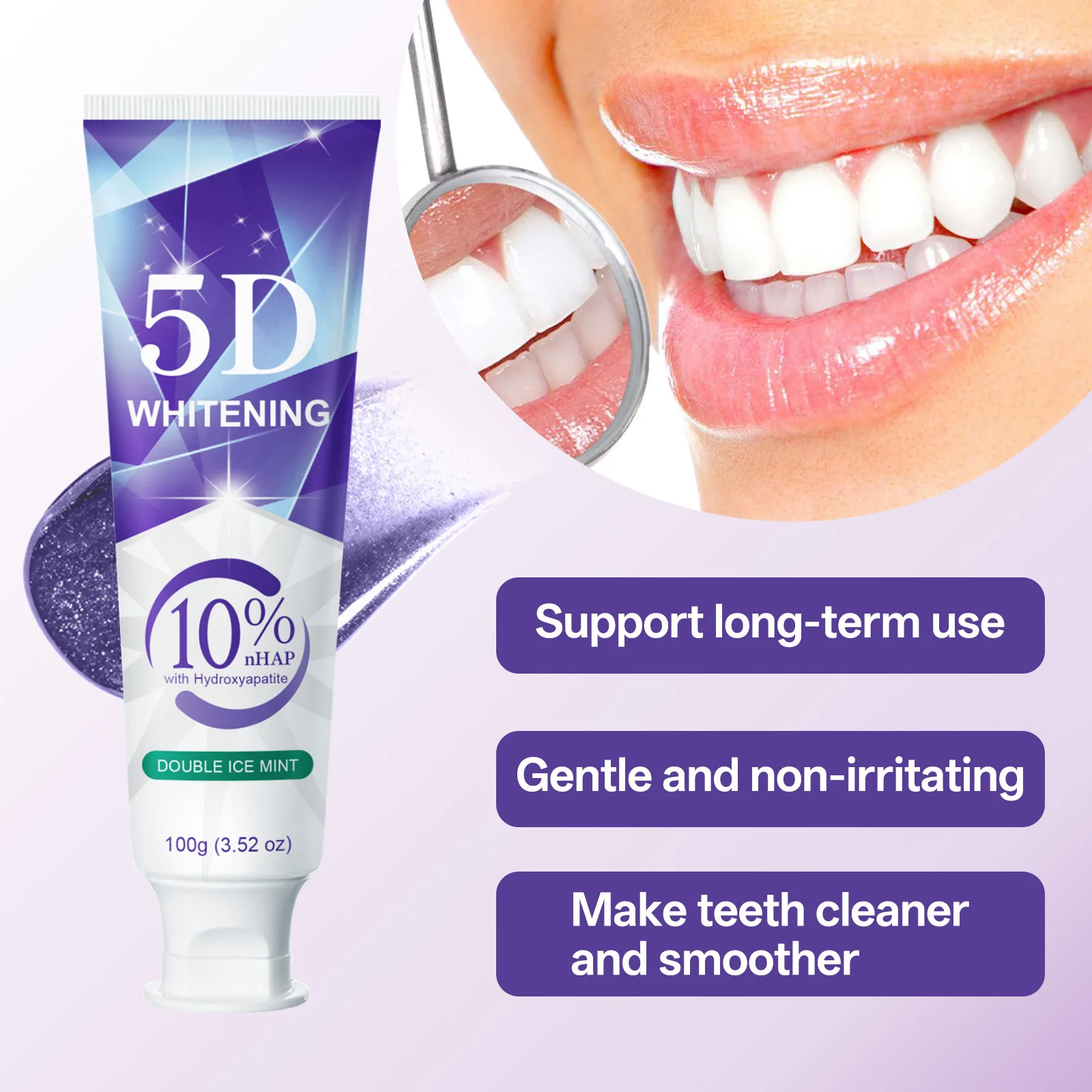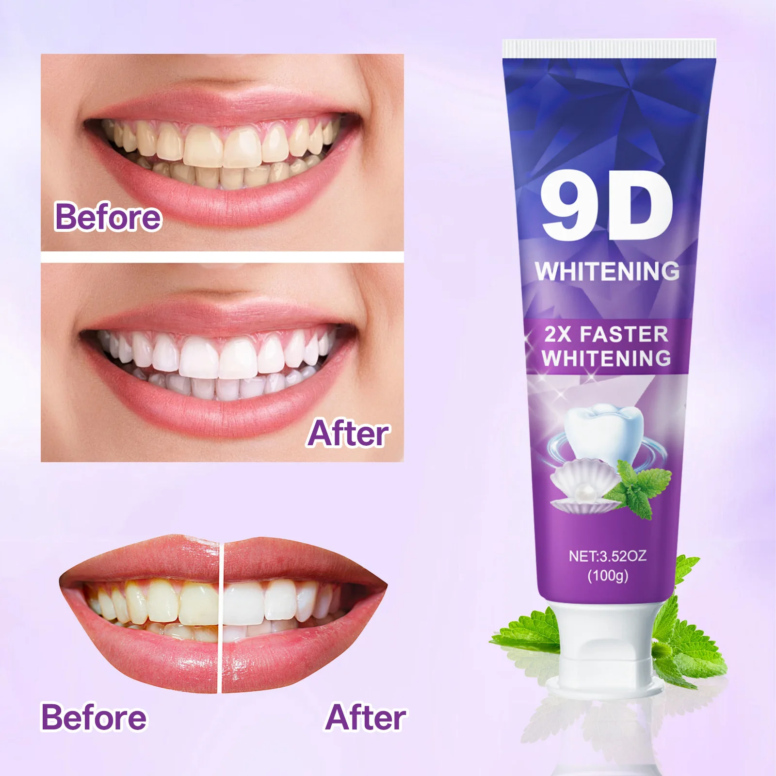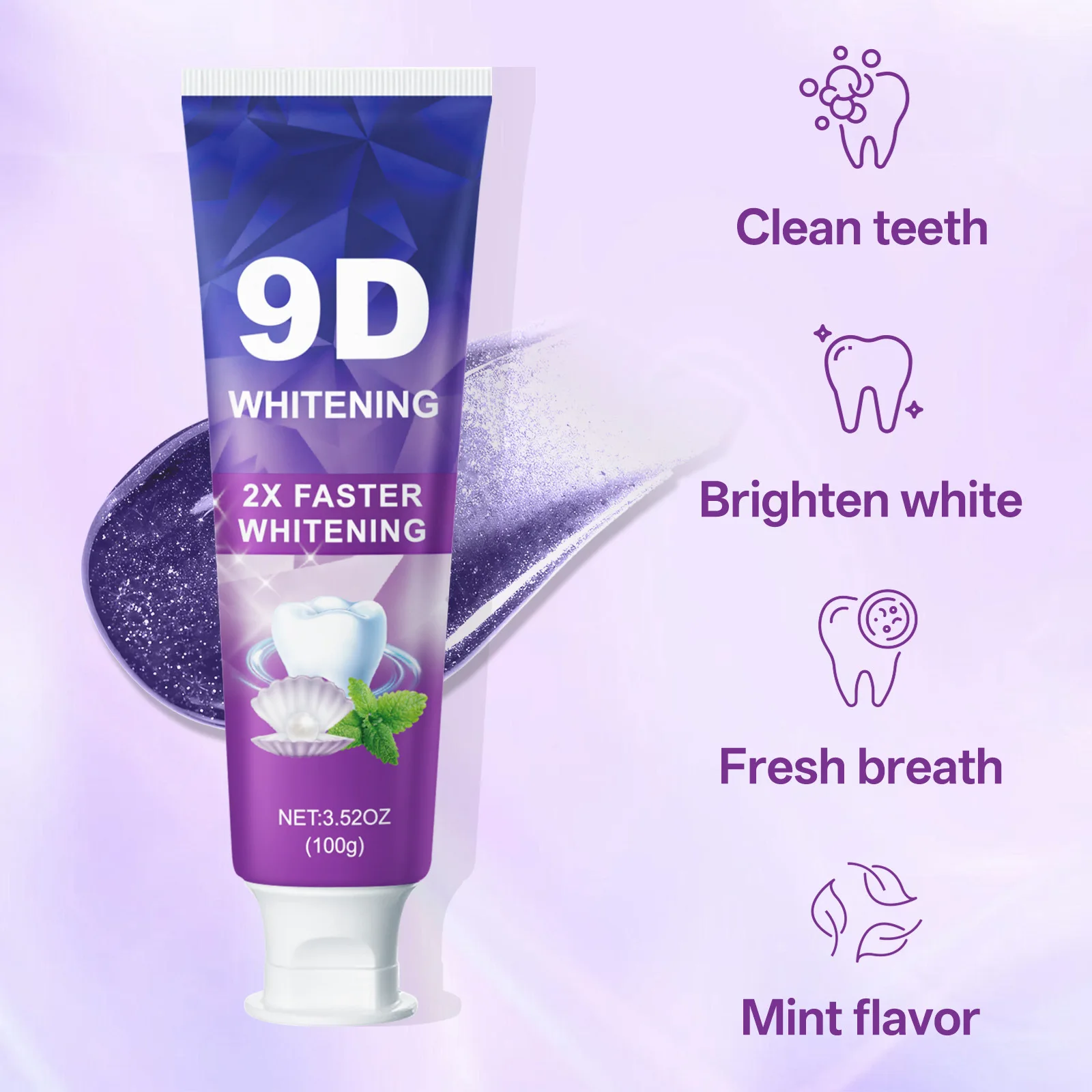 9D 5DPurple Teeth Whitening Toothpaste Remove Plaque Stains Cleaning Oral Hygiene Dental Bleach Tools Fresh Breath Beauty Health
