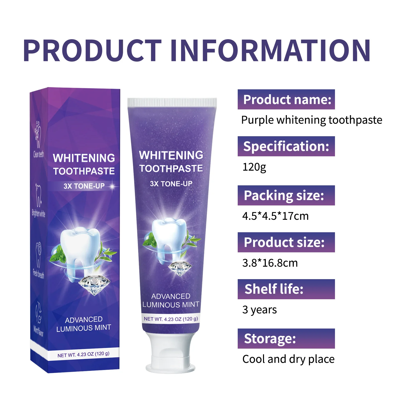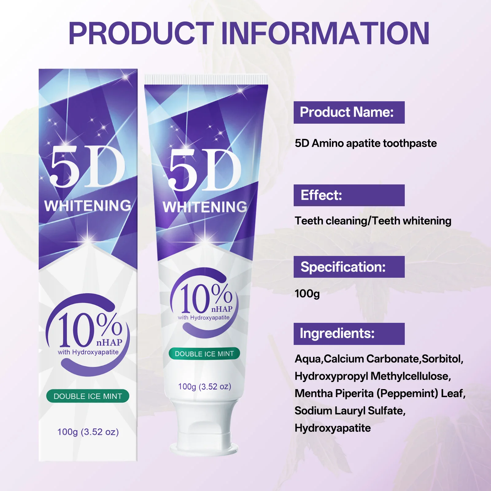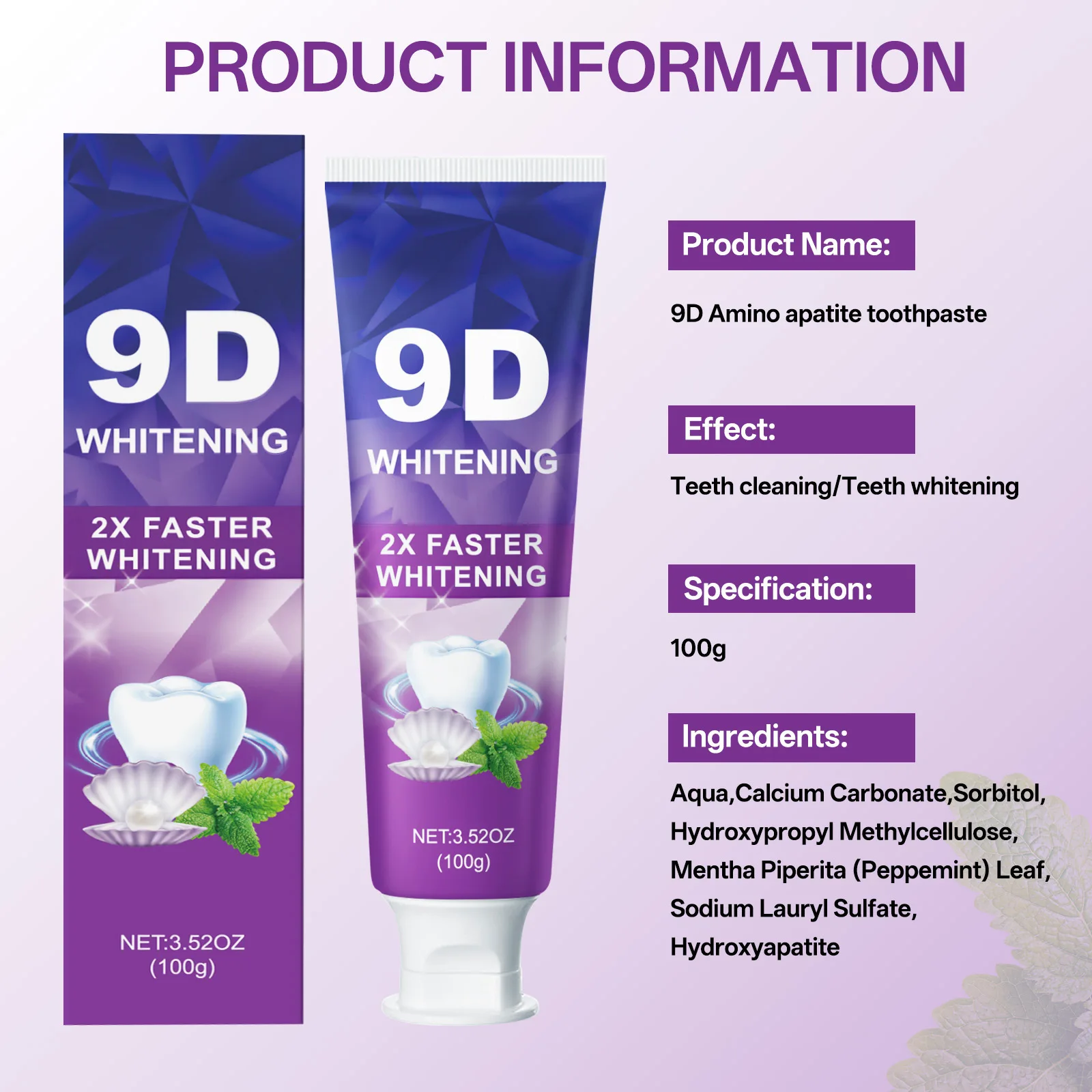 9D 5DPurple Teeth Whitening Toothpaste Remove Plaque Stains Cleaning Oral Hygiene Dental Bleach Tools Fresh Breath Beauty Health