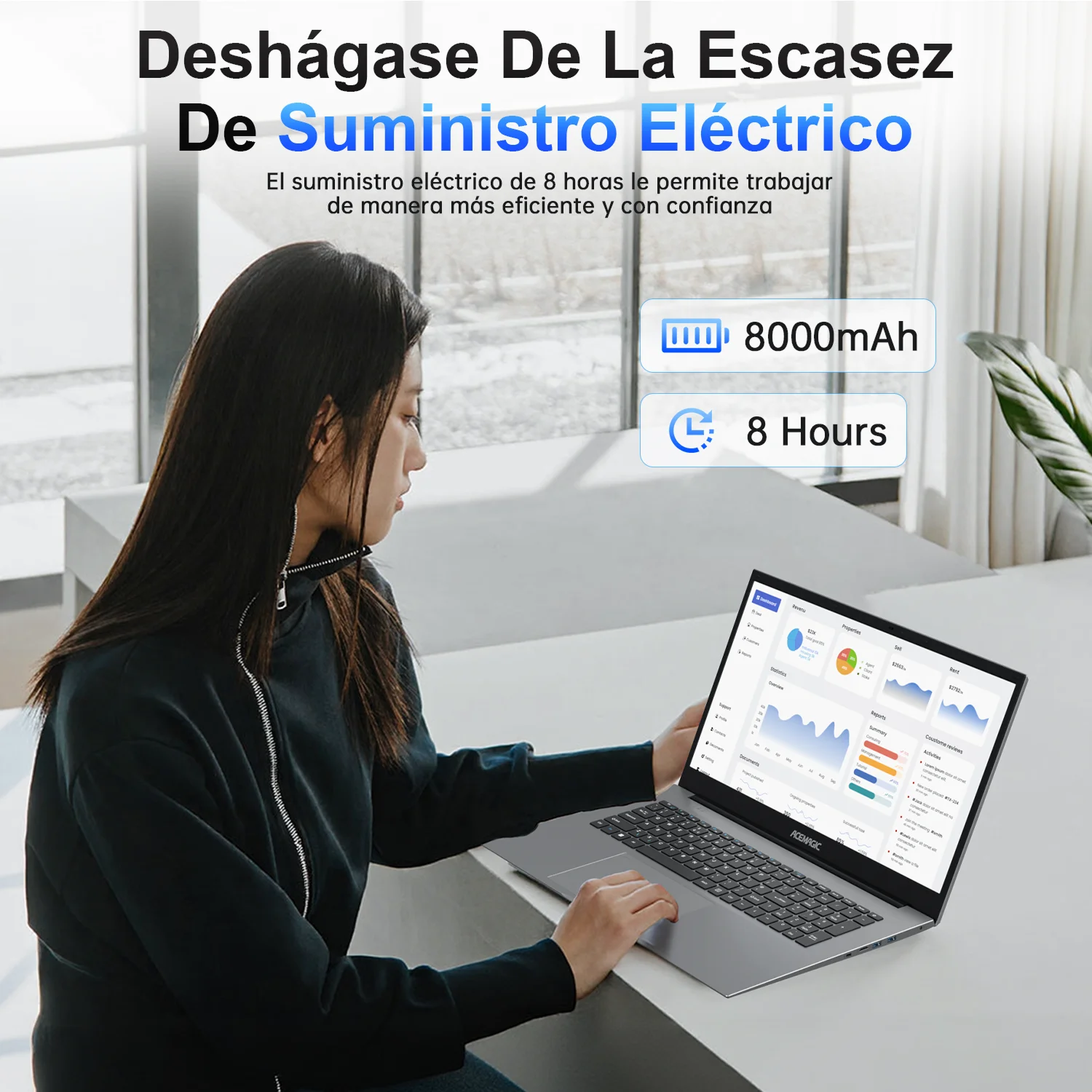 This laptop helps you “Deshágase De La Escasez De Suministro Eléctrico” (Get Rid of Power Supply Shortage). With an 8000mAh battery and 8 hours of power supply, it allows you to work more efficiently and confidently throughout the day. Whether you’re in a meeting, working remotely, or on the go, you can rely on it to keep your productivity high without worrying about running out of power.