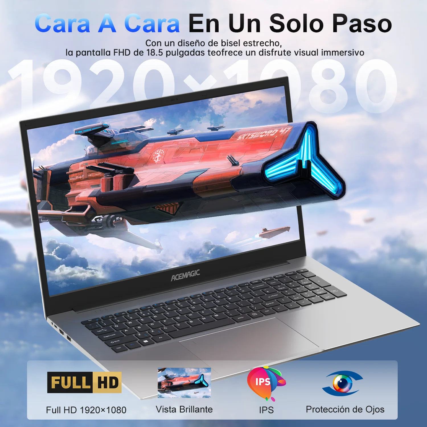 This laptop allows for “Cara A Cara En Un Solo Paso” (Face – to – Face in One Step). With a narrow – bezel design, the 18.5 – inch FHD screen (1920×1080 resolution) offers an immersive visual enjoyment. Featuring Full HD, bright view, IPS technology, and eye protection, it delivers vivid, clear images while caring for your eyes, making every viewing experience delightful.