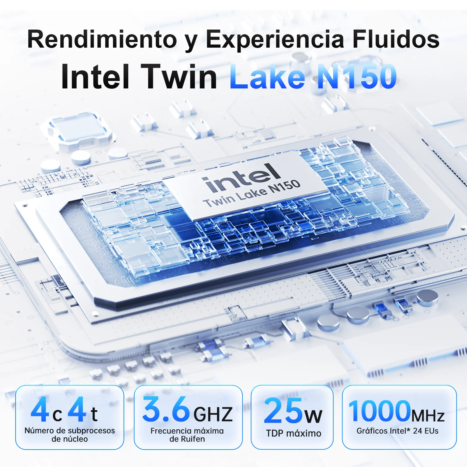 Powered by the Intel Twin Lake N150 processor, this device delivers fluid performance and experience. It features 4 cores and 4 threads, a maximum turbo frequency of 3.6 GHz, a maximum TDP of 25W, and Intel graphics running at 1000MHz with 24 execution units. Whether you’re multitasking, running applications, or enjoying multimedia content, it ensures a smooth and responsive experience.