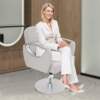 【Adjustable Hydraulic Lift】Tailored for hair stylists and barbershop pros, the lever-controlled hydraulic system adjusts seat height from 18.5″ to 22.4″ while enabling 360° rotation. Whether trimming, styling, or coloring in a salon chair for hair stylist or home hair chair, this flexibility ensures precision for every client’s needs.