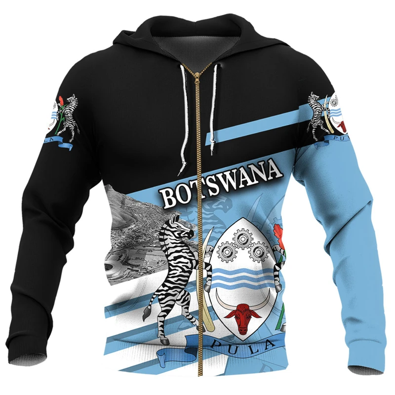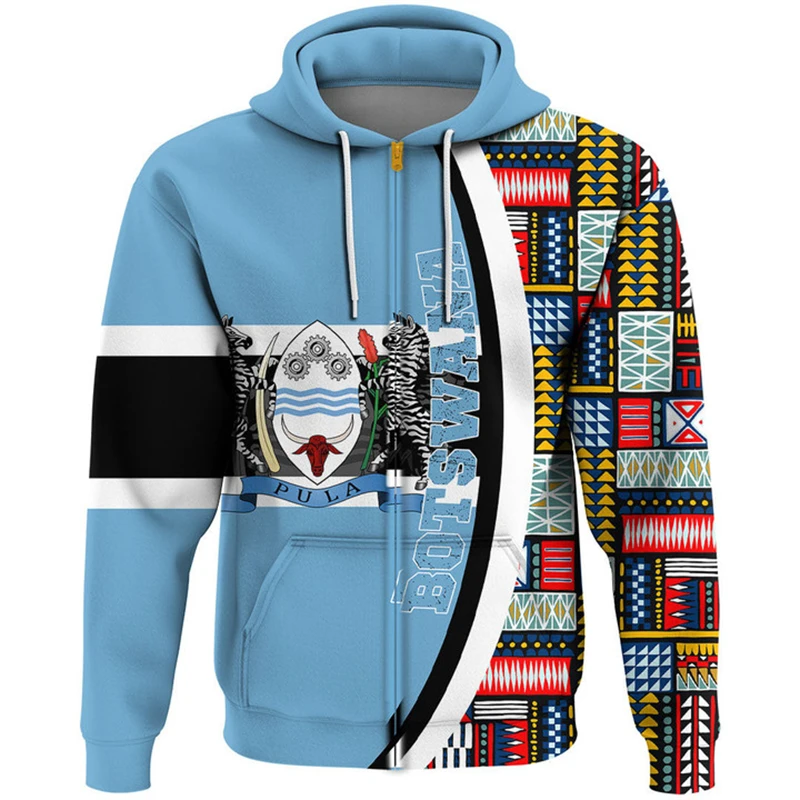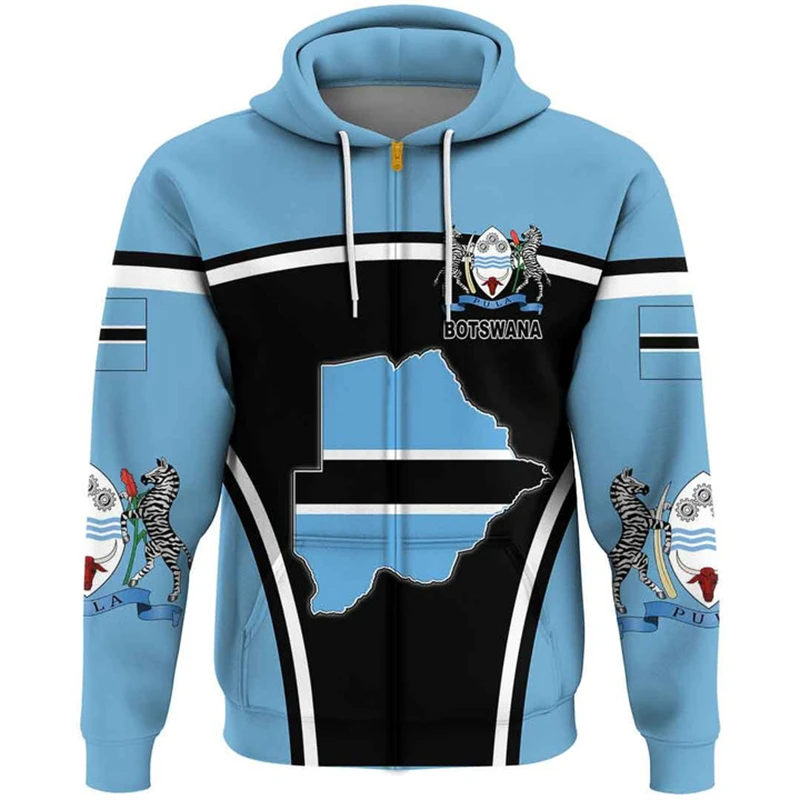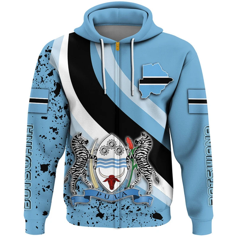 African Region Country Hoodies Men’s Hooded Sweatshirts 3D Printing Retro Botswana Flag Casual Zip Hoodie Oversized 2024 Street
