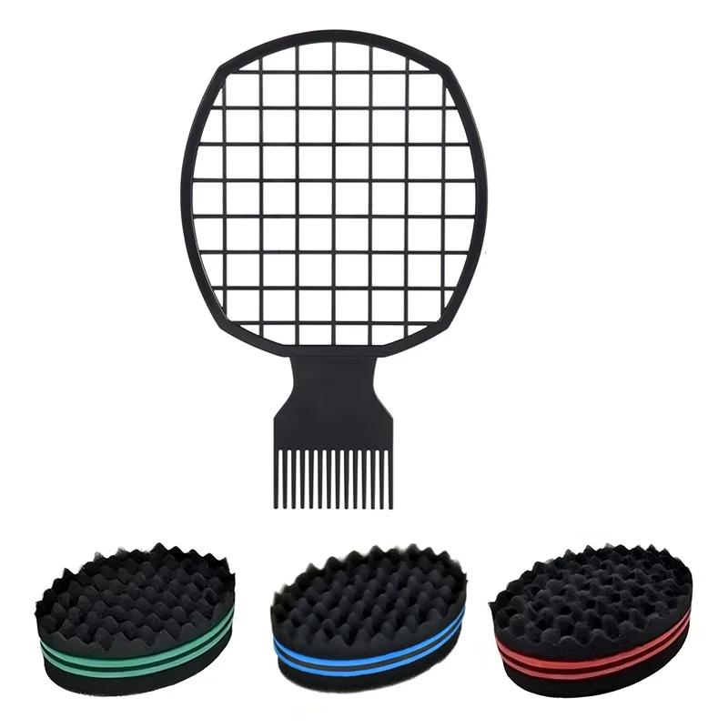 Afro Curly Hair Sponge Brush Twist Hair Comb Glove Set Barbershop Curling Net Comb Salon Hairdressers Wave Hair Style Tools
