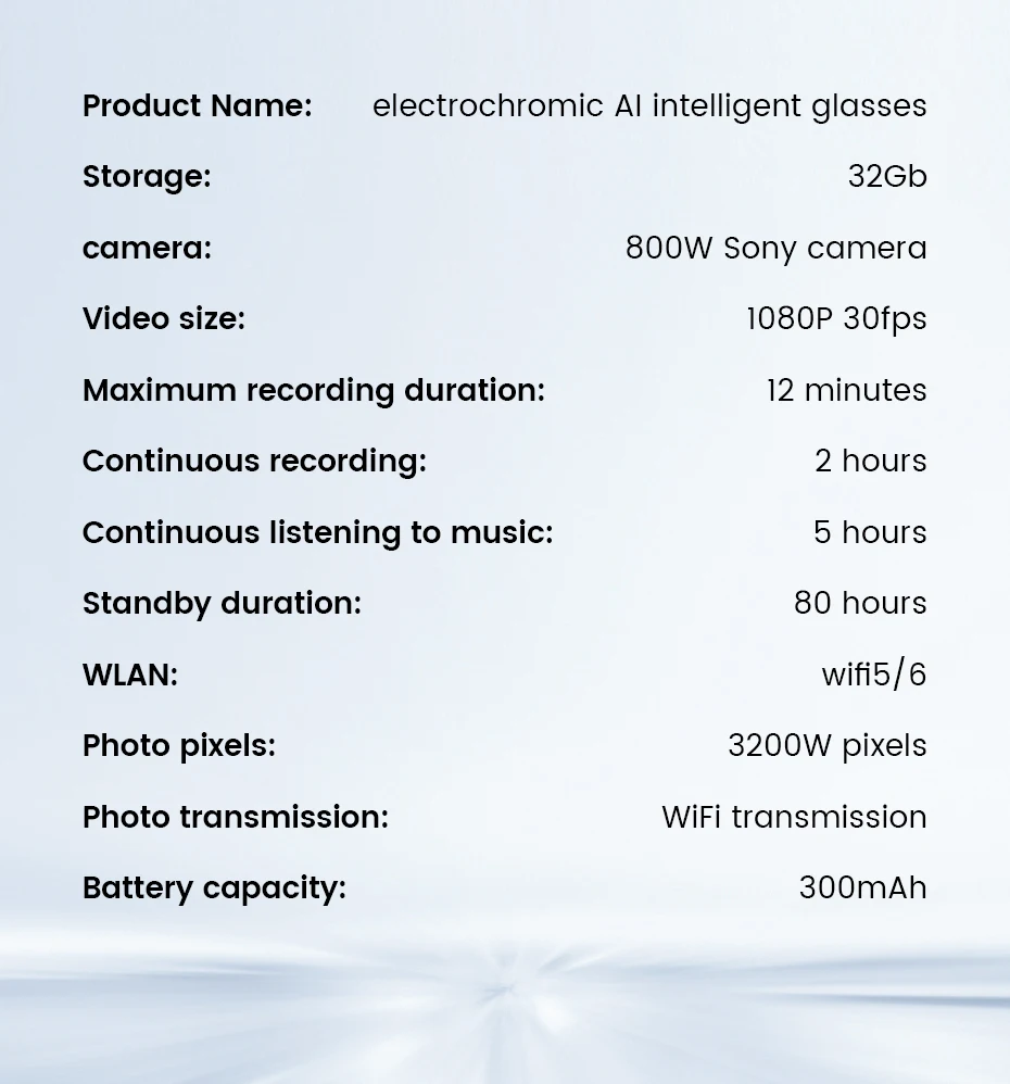AI Smart Glasses 800W HD Camera 32 Million Interpolation Real-Time Translation AI Voice Assistant LED Flashlight Music