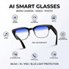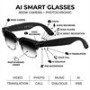 Function points:”High-definition Sony 8 million camera (interpolated pixels 32 million ), AI voice wake-up, AI photo object recognition, AI intelligent question-and-answer interaction, AI intelligent translation, high-definition photography and video recording (with anti-shake function), voice recording, WIFI transfer of photos, videos, and recordings to mobile phone, sliding volume adjustment, wearing detection, dual microphone noise reduction, call noise reduction, Bluetooth calling, music playback (switching, pausing music for appreciation), low-power Jerry + Allwinner main control chip, long battery life, dual physical buttons + sliding touch for convenient operation, 35g lightweight overall weight for comfortable wearing, configurable sunglasses, blue light blocking, photochromic, myopia, and other lenses, 290MA large battery. IP65 dust and water resistance (potting waterproof process), optimized heating and heat dissipation architecture.