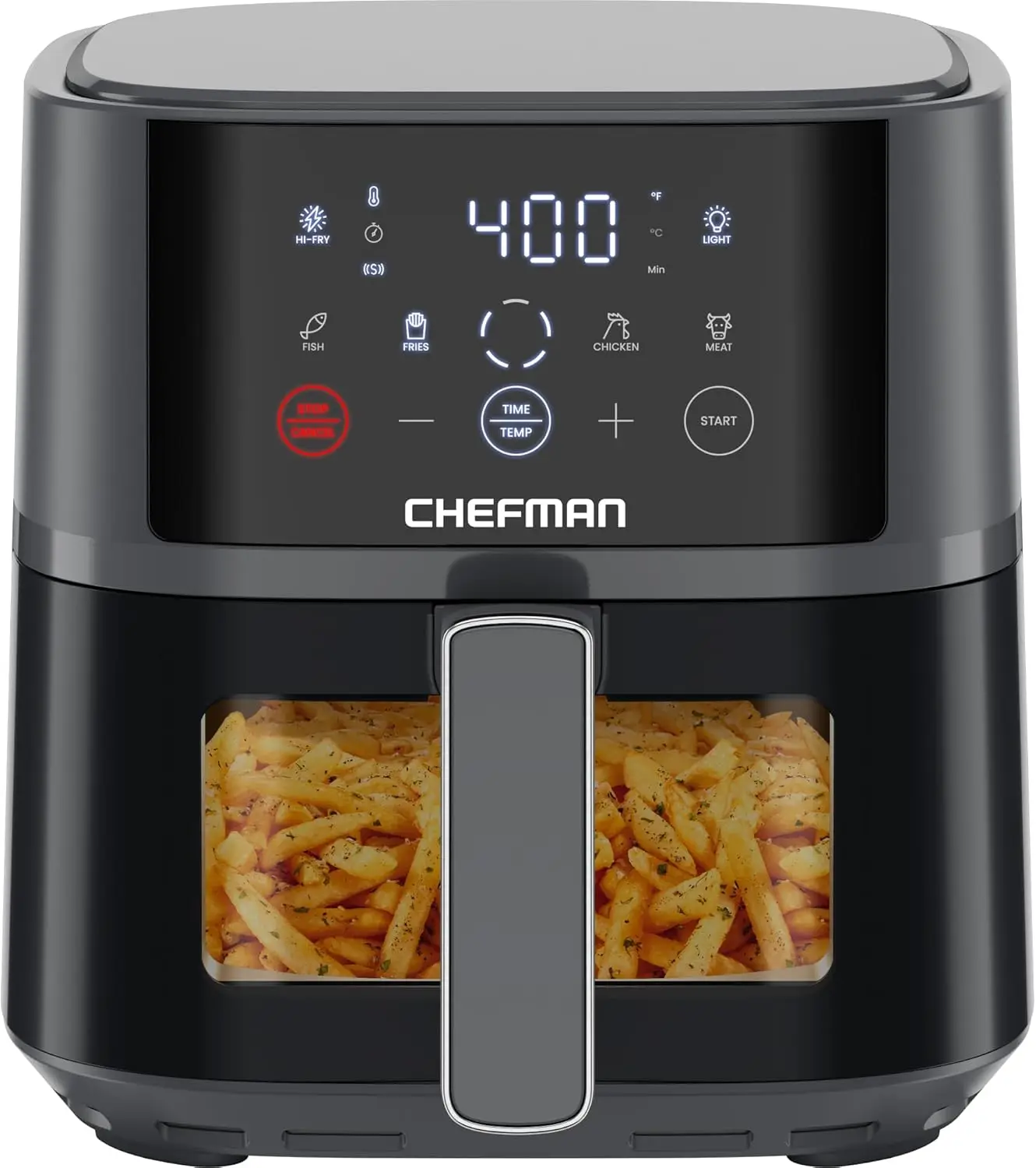- HEALTHY COOKING: Enjoy delicious meals with little-to-no oil. This Chefman small air fryer lets you cook healthier, low-fat meals that still taste amazing.