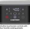 - FAST AND EASY: This compact air fryer handles any culinary challenge. Customize cooking time and temperature with the digital touch screen display or use one of four preset functions for quick, one-touch meals. Perfect for serving 3-5 people.
