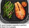 - STYLISH AND COMPACT: The sleek, narrow design of this air fryers maximizes its 6-quart capacity while minimizing its countertop footprint. Its compact size makes it a great space saver, fitting perfectly on your counter or in your cabinets.