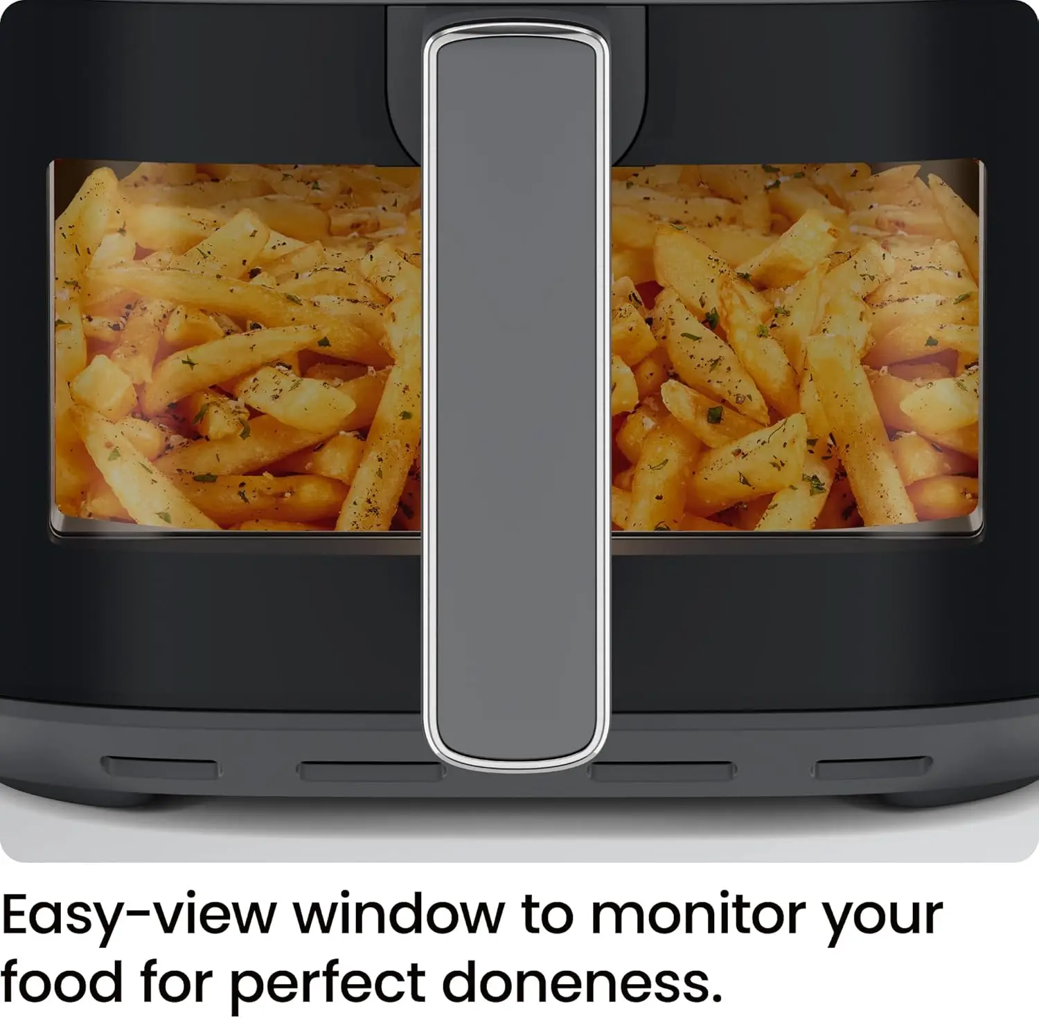 - EASY-VIEW WINDOW: Watch your food fry to your ideal finish. The integrated cooking window on the basket ensures that you can see just how crispy your food gets with only a fraction of the cooking oil.