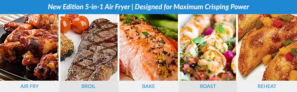 Extra hot air circulation provides crispier, more even frying on top, bottom, and sides of your food while the inside stays tender.