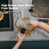 The glass air fryer is equipped with high borosilicate glass, which is heat-resistant and durable. This transparent and visible hot pot air fryer allows you to pay full attention to its deliciousness, without the need to repeatedly open the lid to confirm the cooking effect at a glance. The innovative glass basket design has replaced traditional baskets, eliminating plastic odors and preserving the taste of food.