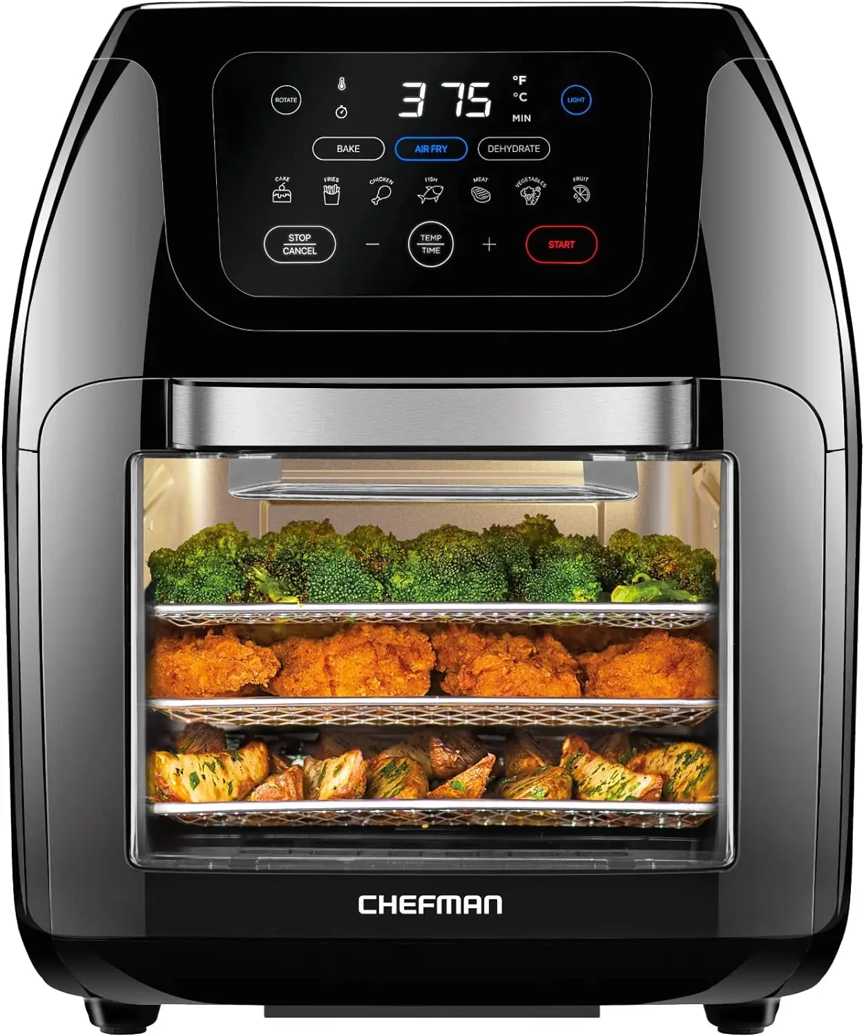 【 12 preset one click 】 Modern touch screen design brings you a brand new experience! The one click menu of the air fryer provides you with comprehensive options and 12 preset menus in one. Just customize meat and vegetables according to your needs. Sensitive and intelligent operation, allowing you to feel the charm of technology. Not only cooking, but also art pieces for decorating the kitchen.