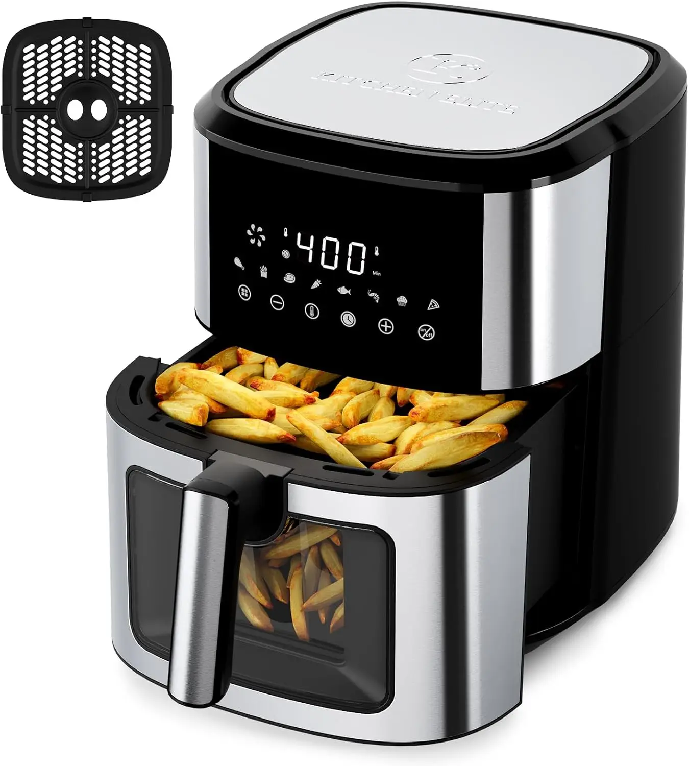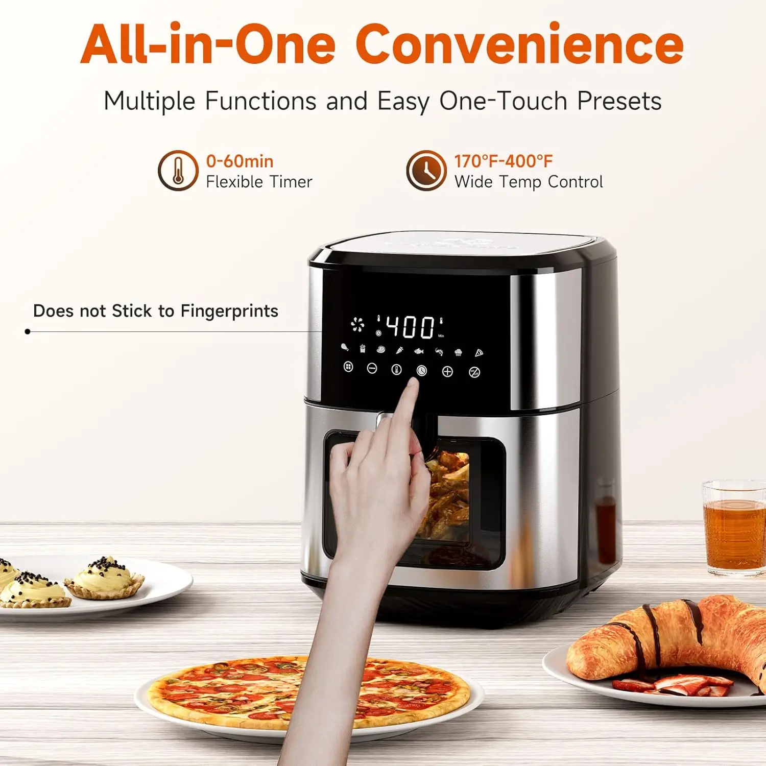 - Multifunctional Cooking: Simplify your cooking process with the convenience of 8 preset cooking functions. From fries and chicken to fish and vegetables, our stainless steel air fryer offers one-touch cooking for eight common foods, making it effortless to prepare delicious meals without the guesswork.
