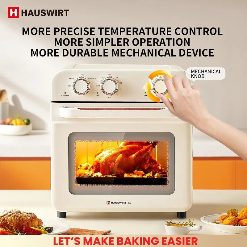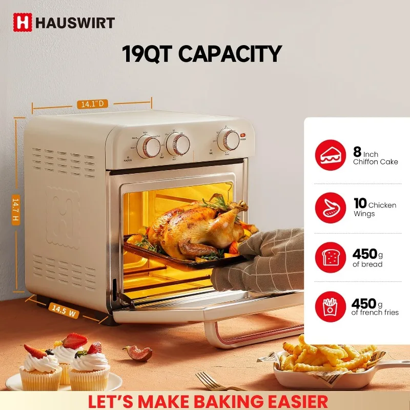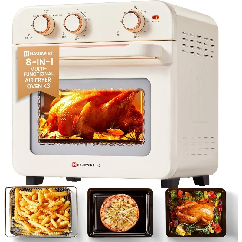 Air Fryer Toaster Oven Combo K3, Retro Convection Oven Countertop,19QT 4-slices or 10″ Pizza, Bake Toast Broil Air Fry, 1250W Rapid Heating, 140°F – 450°F, Non-Stick, White