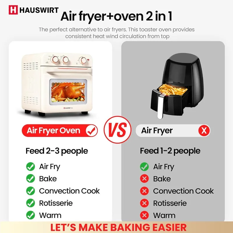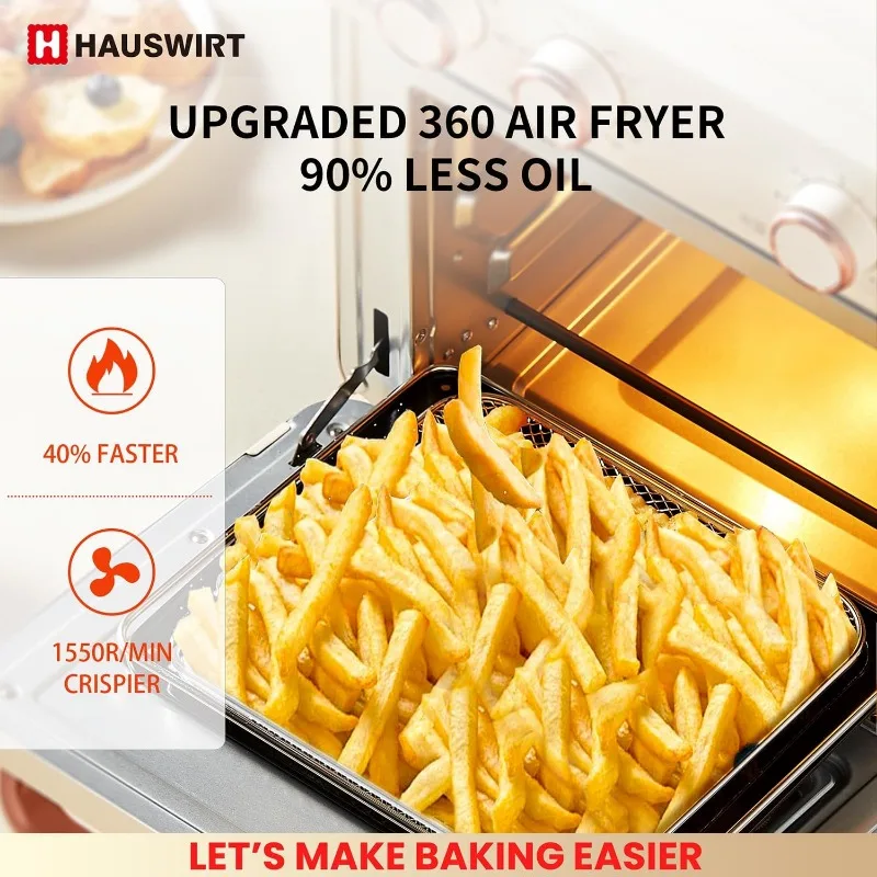 💥Integrated Fryer and Oven: The air fryer toaster oven combo is equipped with 4 upper and 2 lower heating tubes + high-speed motor fan, The air fryer oven can meet the high temperature requirements for baking foods such as macarons, croissants, and cakes, and can also meet the production of low-smoke, low-oil, and low-fat healthy foods such as chicken popcorn, kebabs, egg tarts, and french fries.