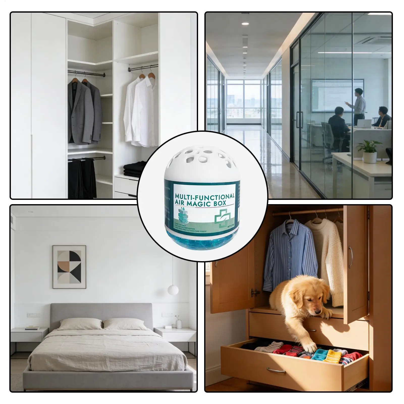 The 120g Bedroom Air Purification Box is designed to improve indoor air quality using plant extract, ensuring a cleaner and fresher environment. This long-lasting air purifier requires no electricity, making it an energy-efficient solution for odor control in various spaces. Its silent functioning ensures undisturbed comfort, ideal for bedrooms, closets, nurseries, and pet areas. Suitable for entryways, living rooms, kitchens, offices, apartments, and study rooms, this versatile product effectively eliminates unwanted smells while maintaining a pleasant atmosphere indoors. The compact design allows seamless integration into any home or work area, offering reliable air purification without compromising aesthetics. Experience improved air quality with this innovative solution crafted for modern indoor lifestyles.