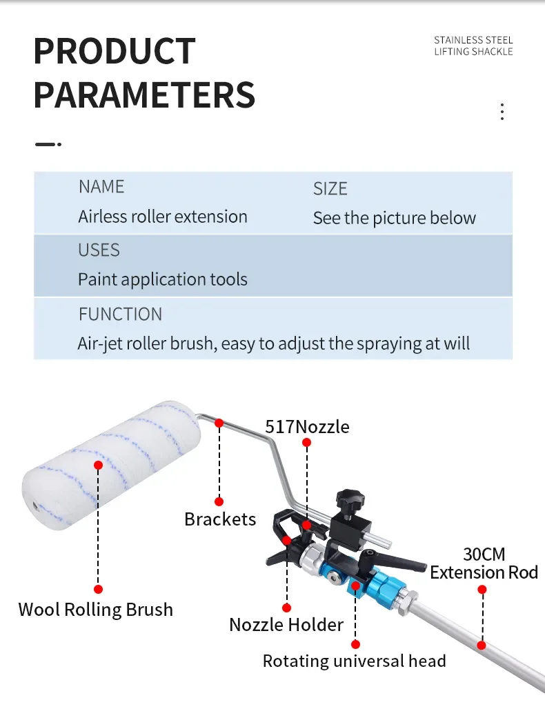 Airless Paint Roller Brush Handle Tool Support For Wall Decorative With 517 Tip Nozzle Rotating Joint 30cm Extension Rod