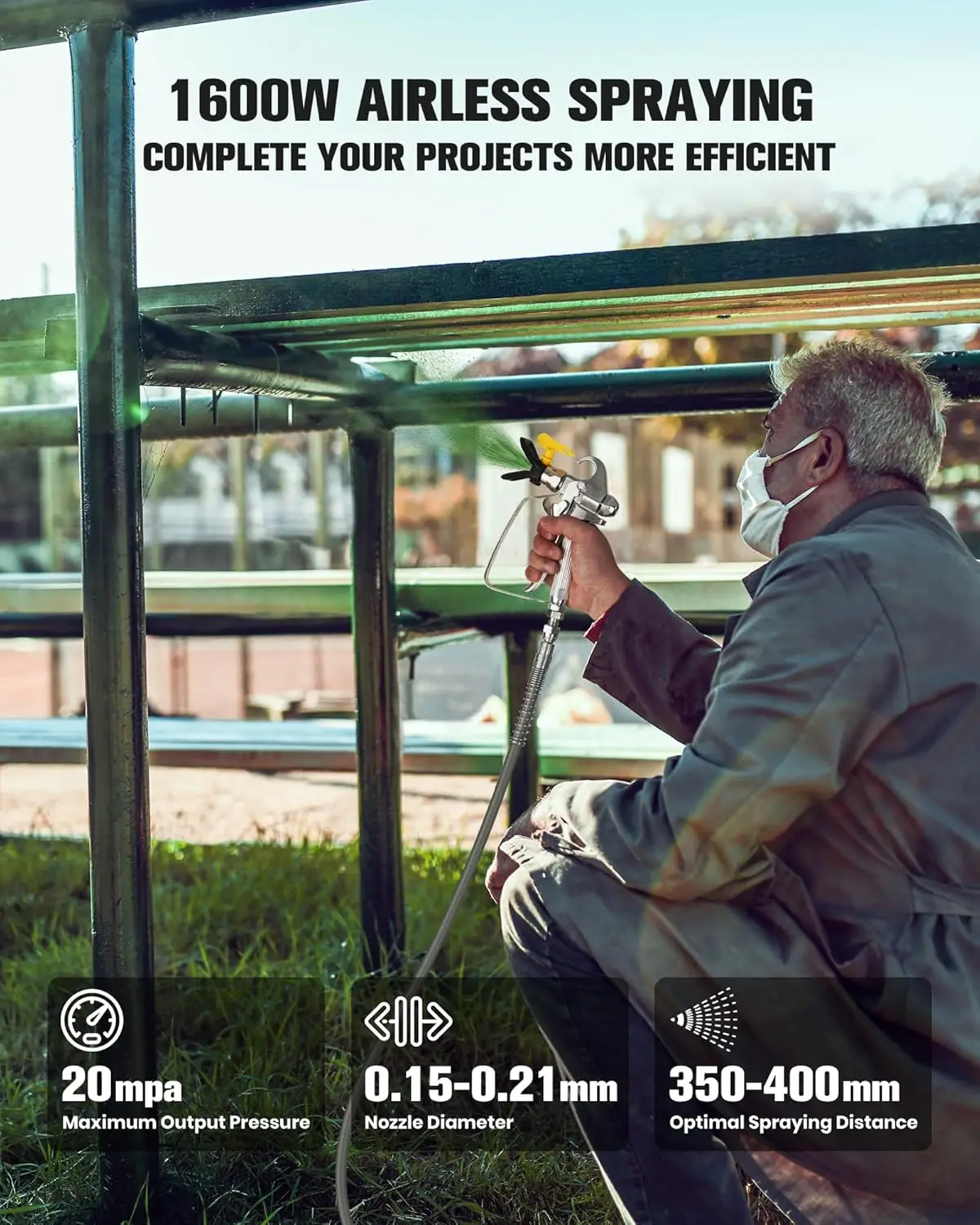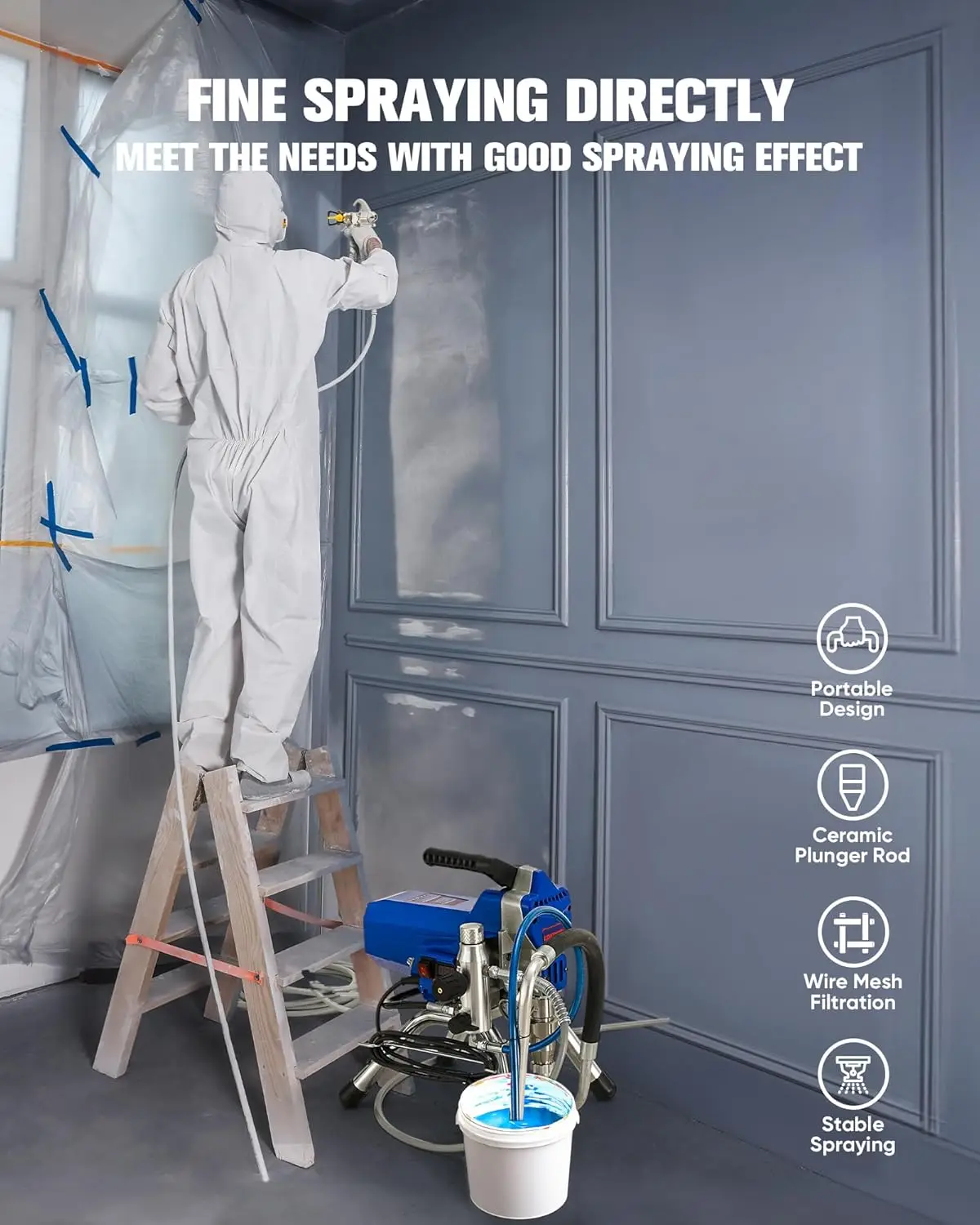 - 【Thinning-Free Sprayer】Our airless paint sprayer supports thick pigment spraying, like anti rust paint, latex paint, paint, epoxy paint and makes our works more simple and efficient.