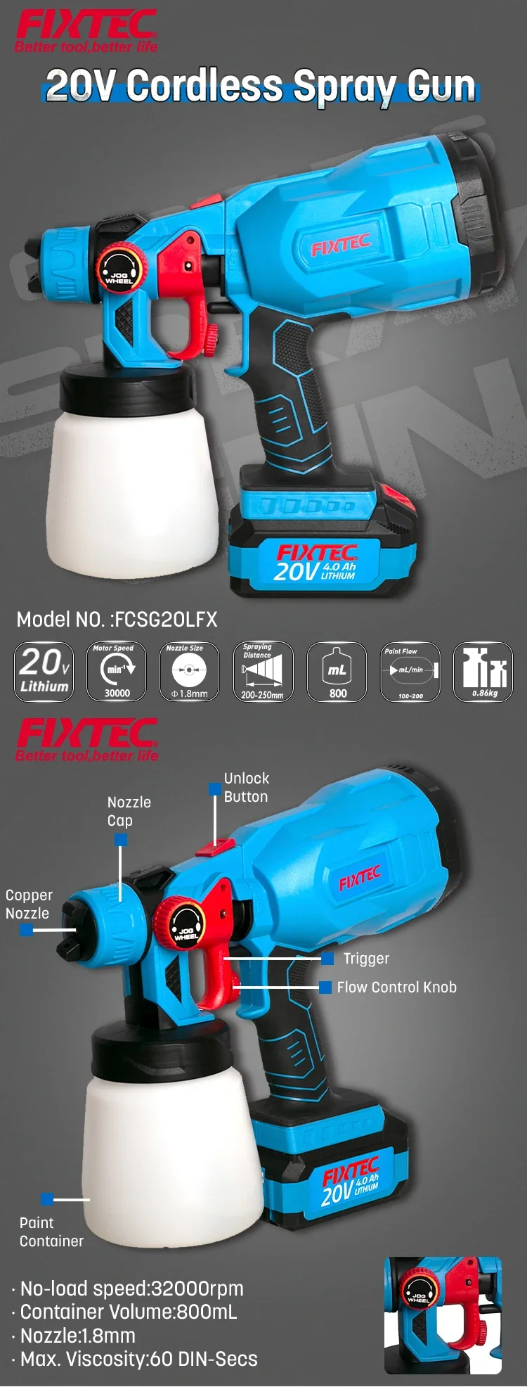 FIXTEC Airless Paint Sprayer 20V Li-ion Best Portable Cordless Power Paint Spray Gun