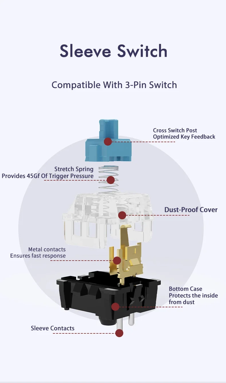 Hot Swap Feature :The hot swap feature allows you to customize your typing experience by easily switching between different key switches.